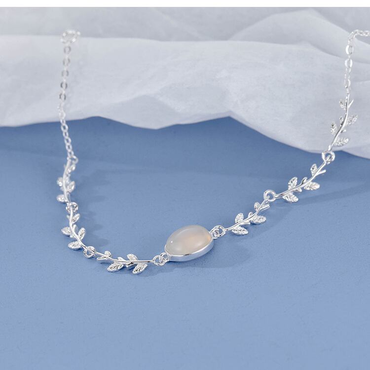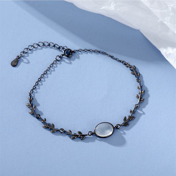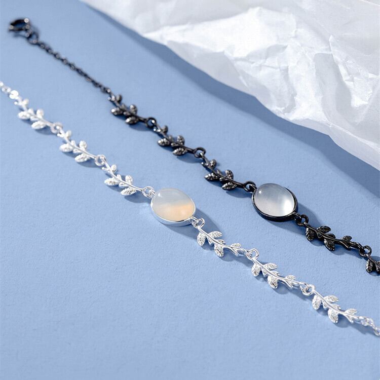 送料無料 ANENJERYリーフムーンライトブレスレット女性シンプルで用途の広いオパールブレスレットジュエリーギフト 蛋白石 アクセサリー AE165512301194298