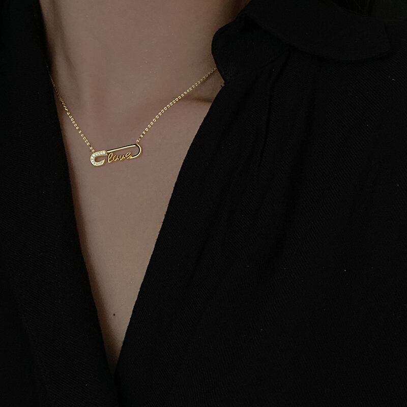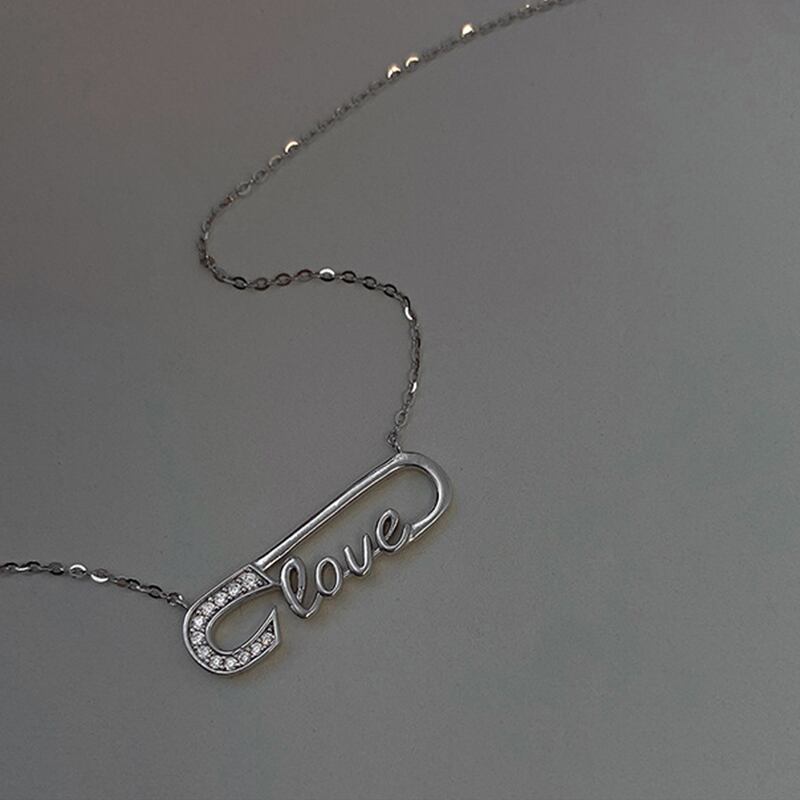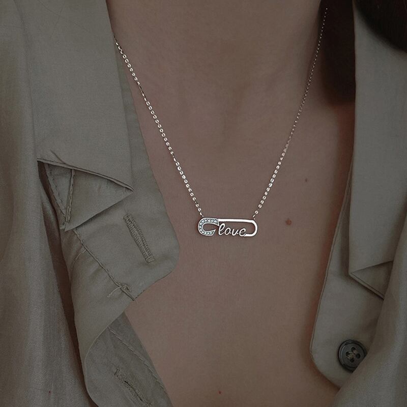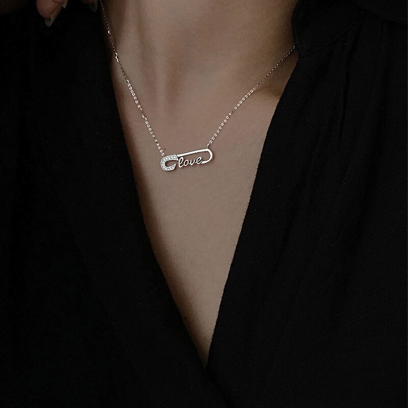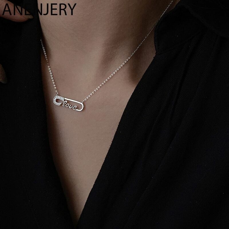 送料無料 ANENJERYシルバーカラー銅レターピンネックレス女性マイクロ象眼細工Zrconシンプルな気質チョーカーライトラグジュアリージュエリー レース 銀 アクセサリー AE16553606907860