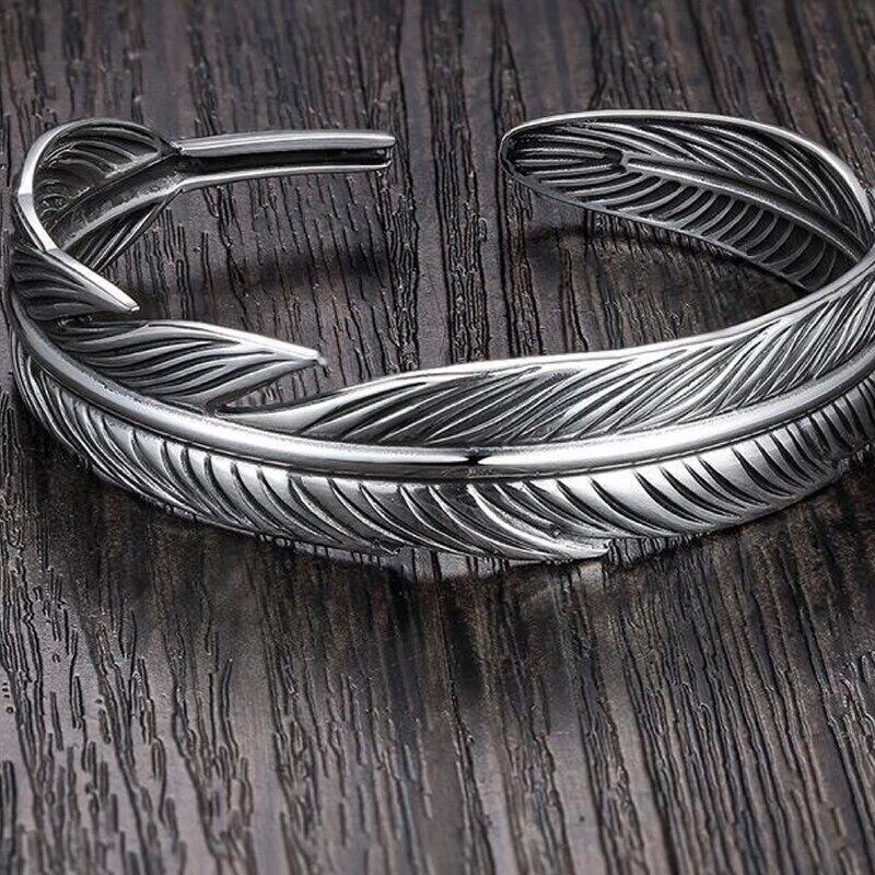 送料無料 ANENJERYシルバーカラーワイドフェザーカフブレスレット&バングルレディースメンズヴィンテージタイシルバージュエリー 銀 ビンテージ アクセサリー AE165525136394228
