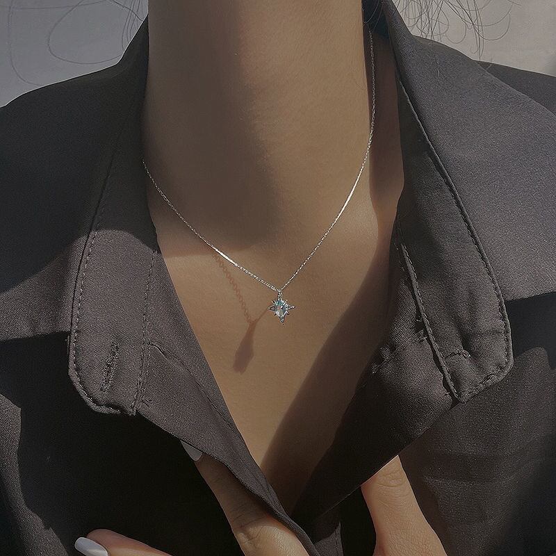 送料無料 ANENJERYシルバーカラー銅ジルコンスターペンダントネックレス女性ライトラグジュアリーヴィンテージクラビクルチェーン手作りジュエリーギフト レース 銀 ビンテージ アクセサリー AE165593393746339