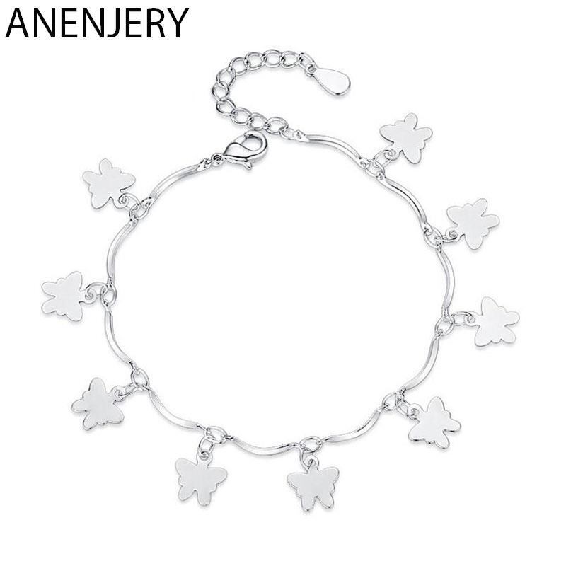 送料無料 ANENJERYシルバーカラーバタフライスターリーフテルブレスレットバングルウィメンズガールアジャスタブルブレイクレットS-B112 銀 アクセサリー AE165544403374985