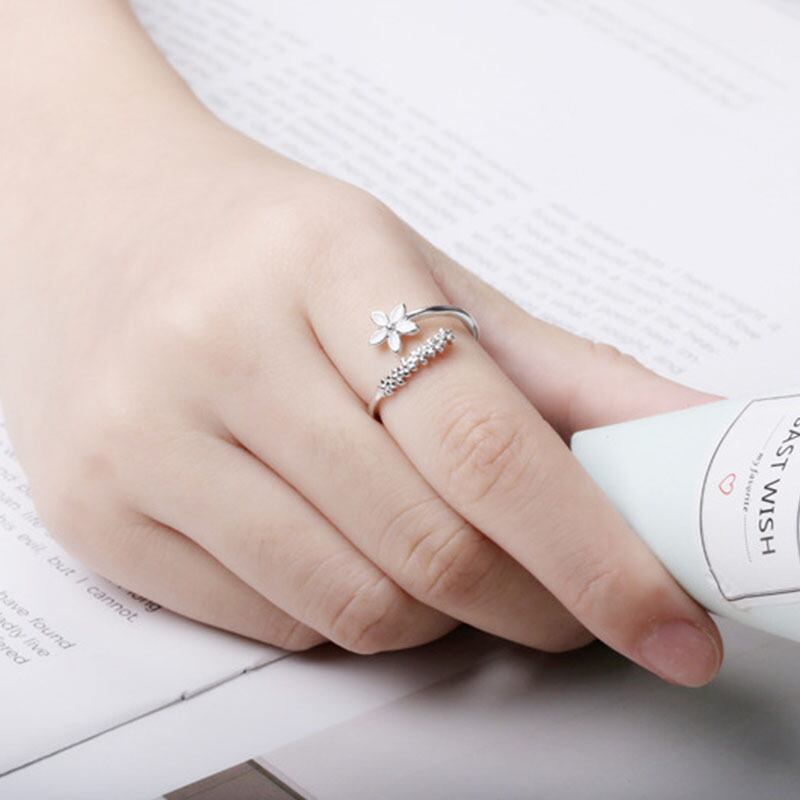 送料無料 ANENJERYシルバーカラー銅小花アジャスタブルリング女性シンプルフレッシュスチューデントスウィートアクセサリー 大人ガーリー キュート カジュアル 指輪 フラワーデザイン 銀 アクセサリー AE16552998222171
