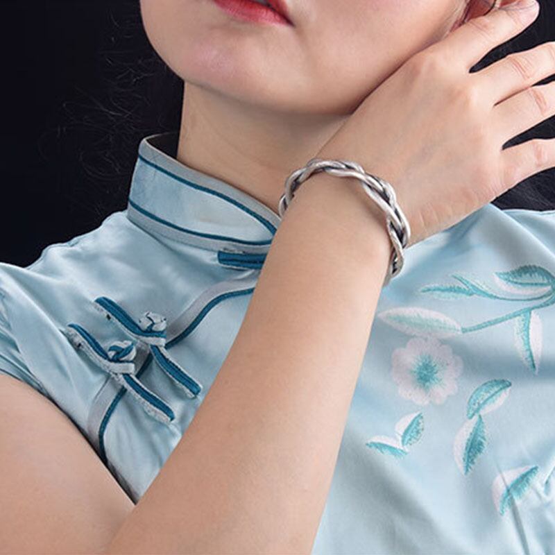 送料無料 ANENJERYシルバーカラー銅編みツイストブレスレットバングル女性レトロメンズジュエリー 銀 アクセサリー AE165543105728437
