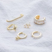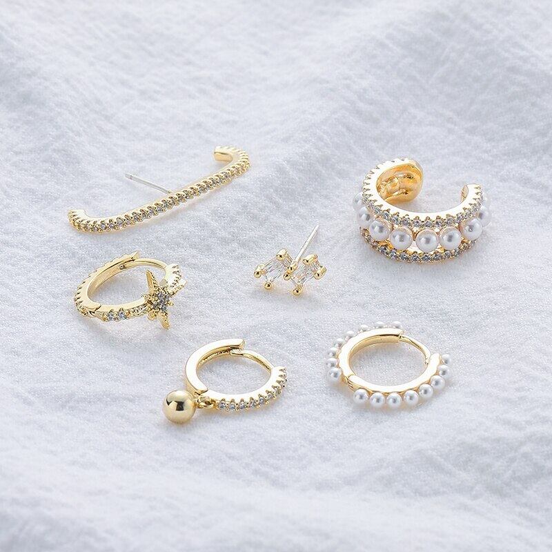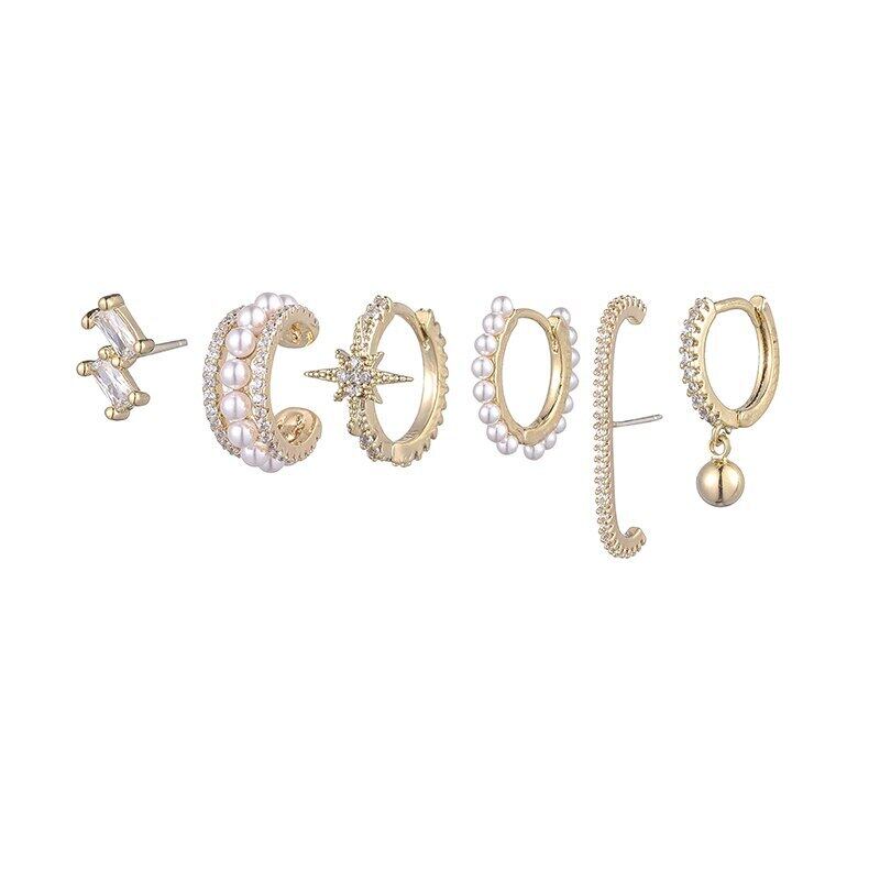 送料無料 ANENJERY6個/セットシルバーカラースターパールフープイヤリングセットマイクロジルコンイヤークリップクリエイティブパーティージュエリーギフト 真珠 銀 アクセサリー AE165588158105452