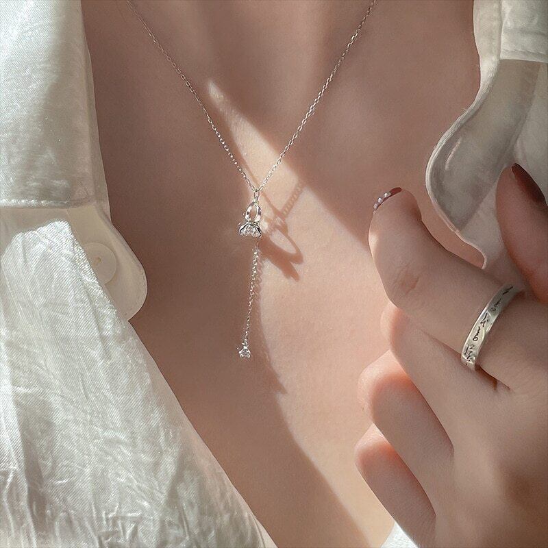 送料無料 ANENJERYシルバーカラーラージザーコンサークルプロミスネックレスシンプルで繊細な鎖骨チェーンTelネックレス レース 銀 アクセサリー AE165576671771803