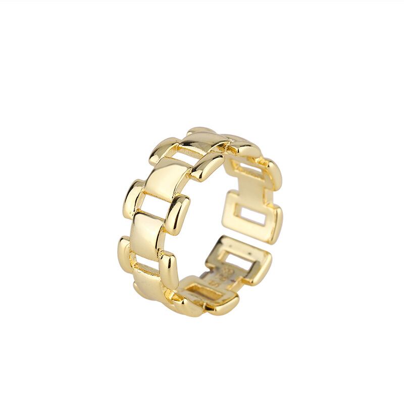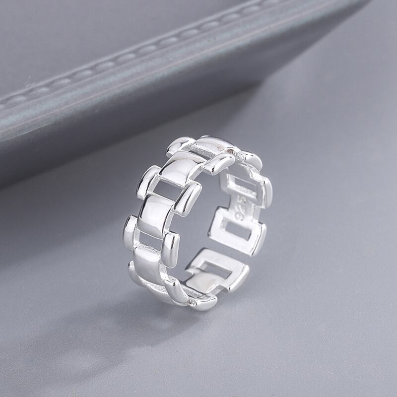 送料無料 ANENJERYシルバーカラー銅チェーンロックメタルホローリング女性シンプルオープンリングジュエリー 指輪 銀 アクセサリー AE165566970343518