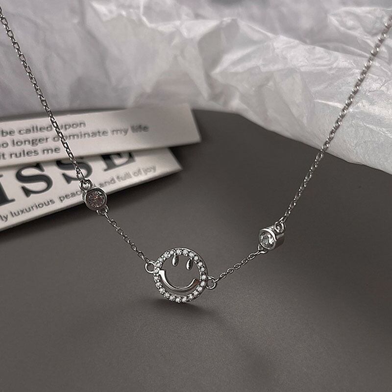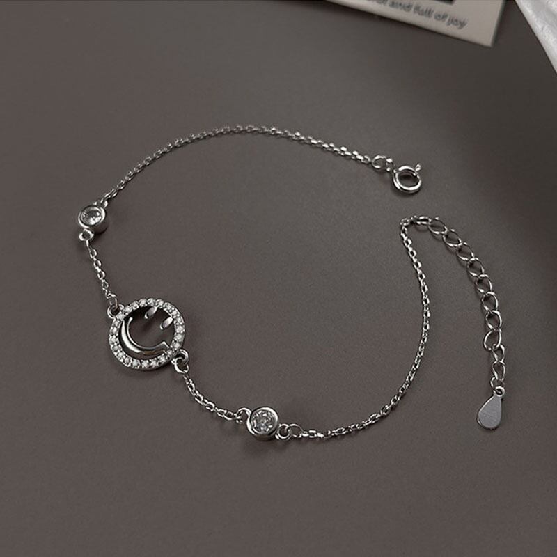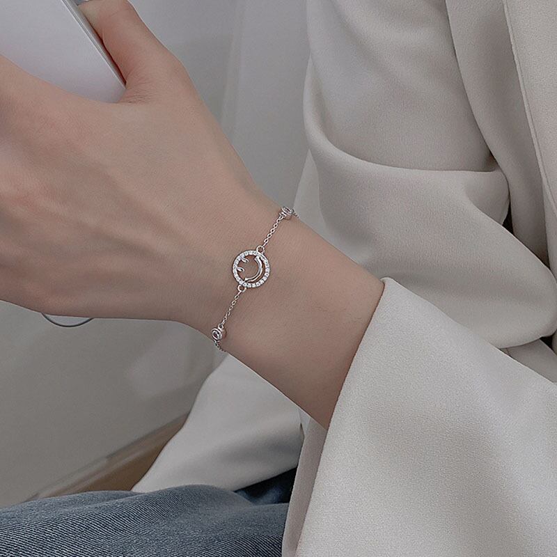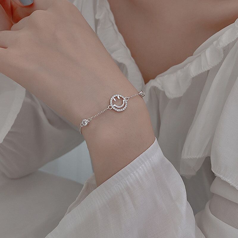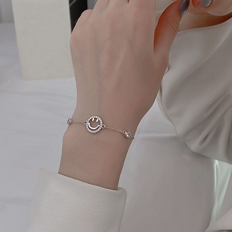 送料無料 ANENJERYシルバーカラー銅マイクロジルコン中空スマイリーフェイスチェーンブレスレット女性シンプルオールマッチジュエリー 銀 アクセサリー AE165574438966324