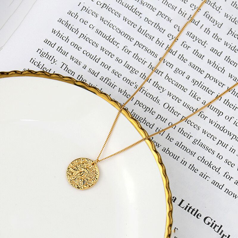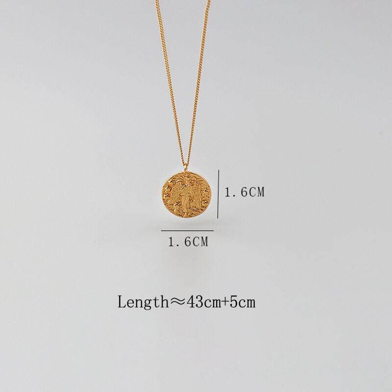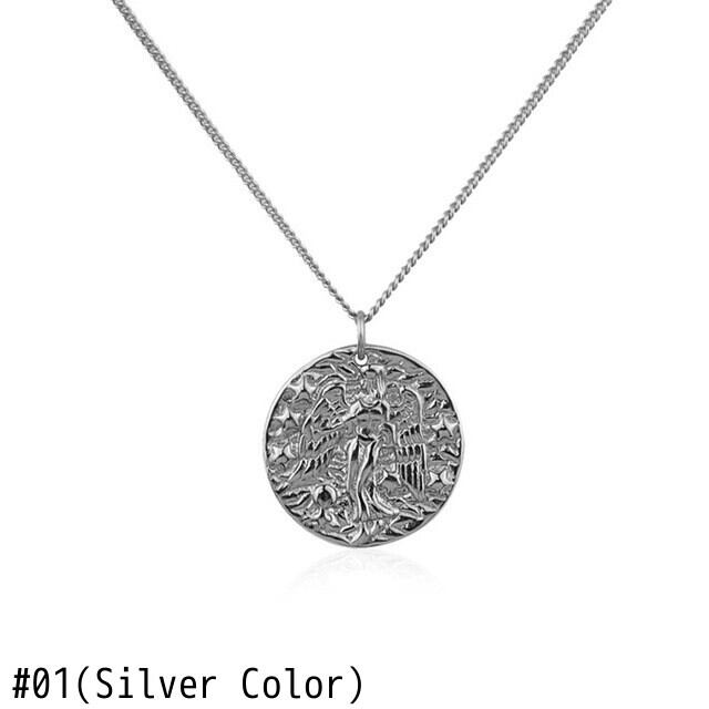 送料無料 ANENJERYシルバーカラーコインネックレス女性男性エンジェル鎖骨チェーンペンダントネックレスジュエリー レース 銀 アクセサリー AE165573626693722