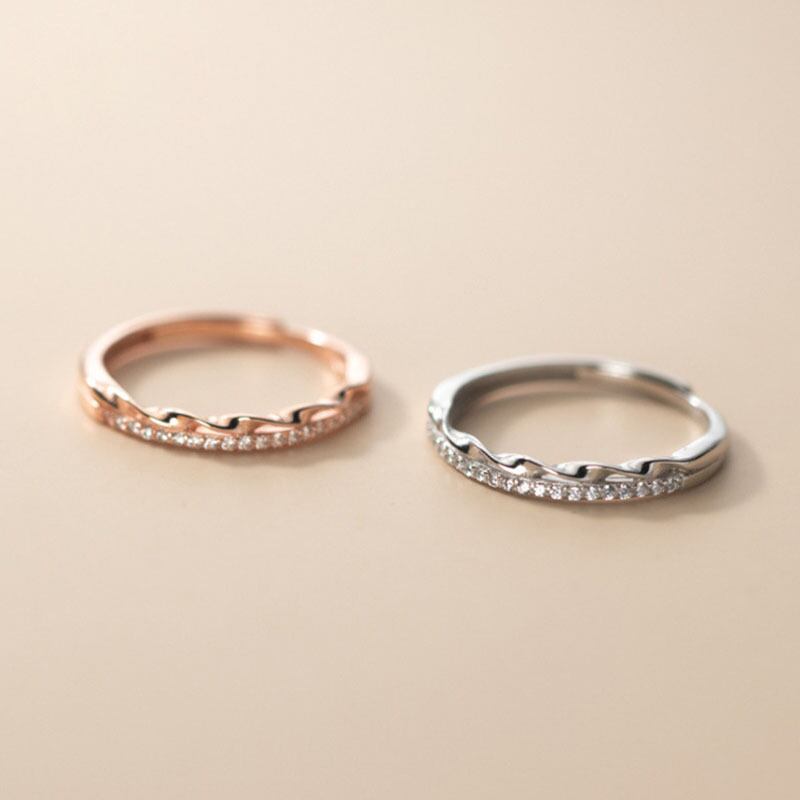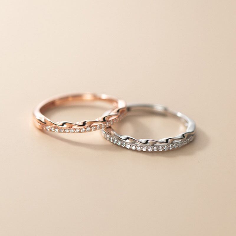 送料無料 ANENJERYシルバーカラーカッパージルコンツイストテクスチャーアジャスタブルリングレディースシンプルスチューデントパーソナルアクセサリー 指輪 銀 アクセサリー AE165568495131720