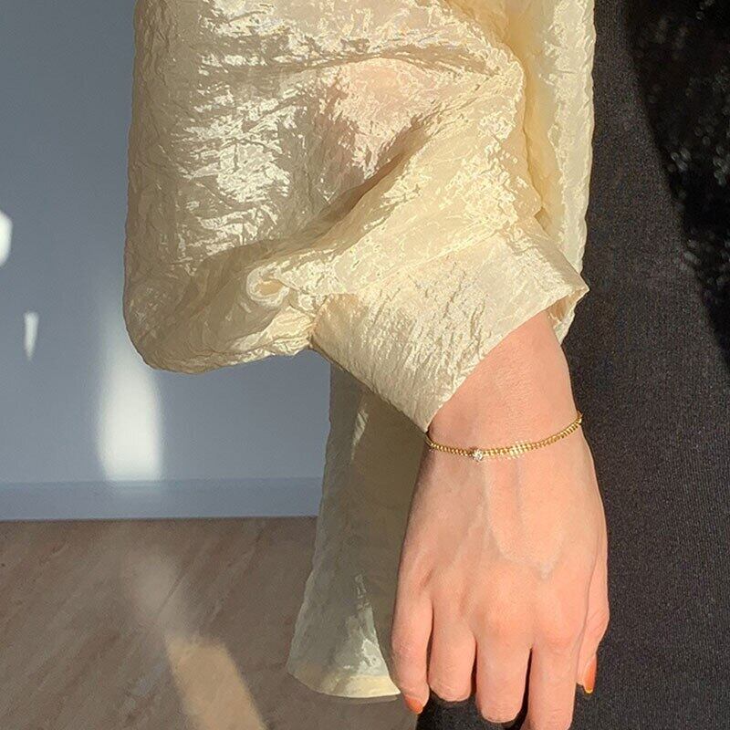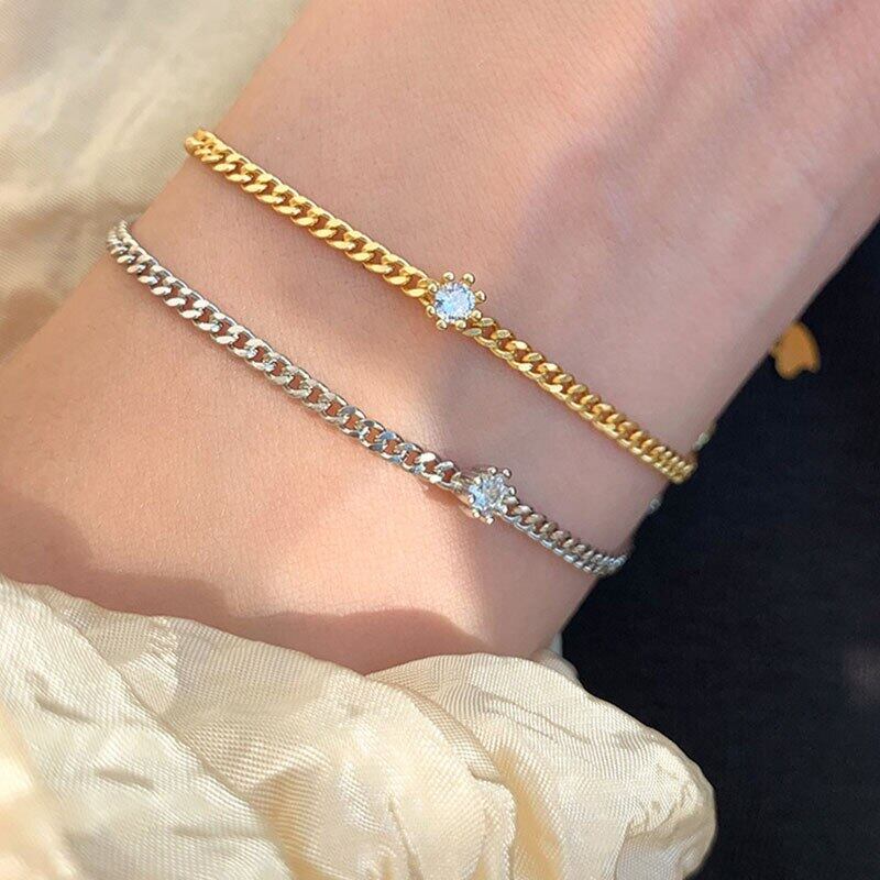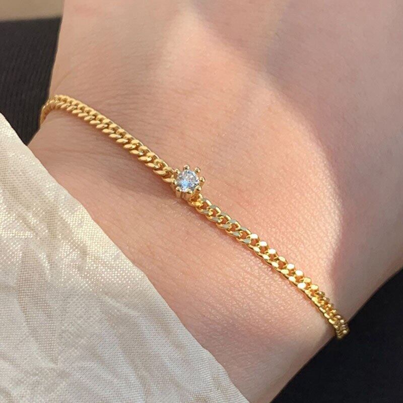 送料無料 ANENJERYシルバーカラーシングルジルコンブレスレットゴールデンチェーンシンプルジュエリー 銀 アクセサリー AE16557413138181