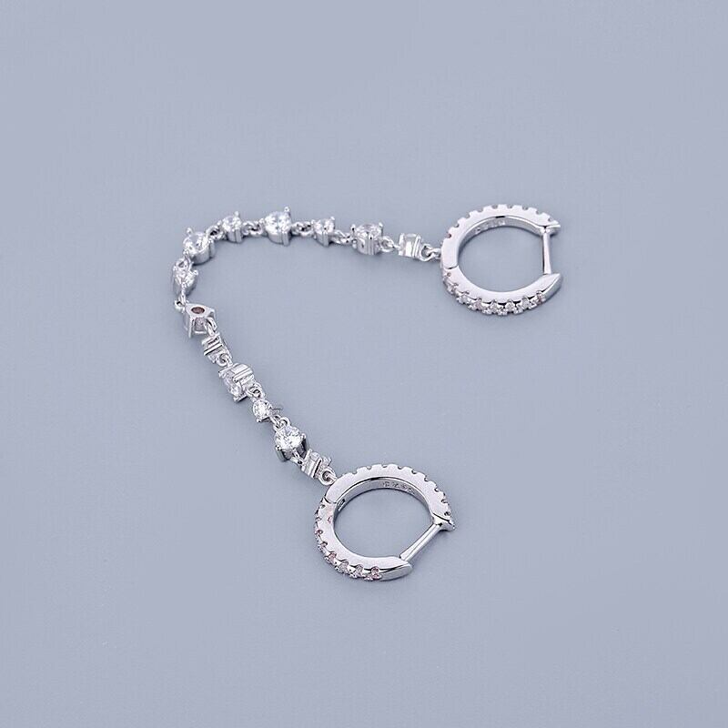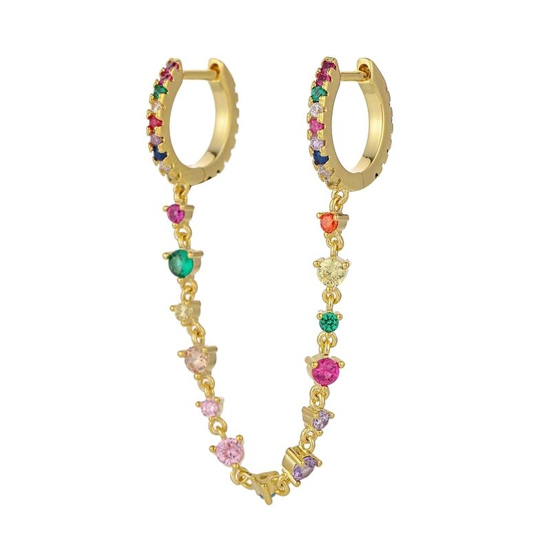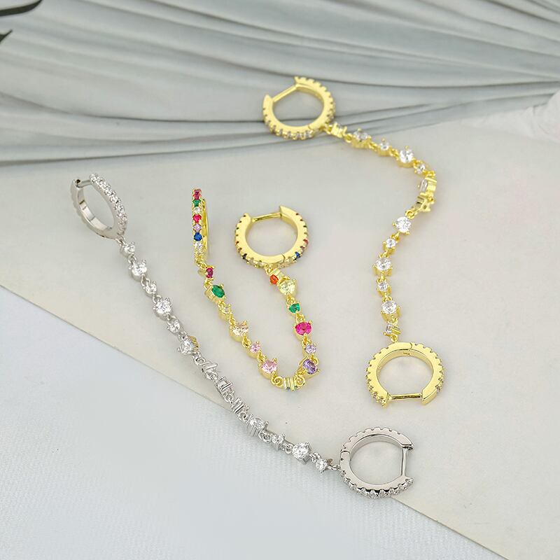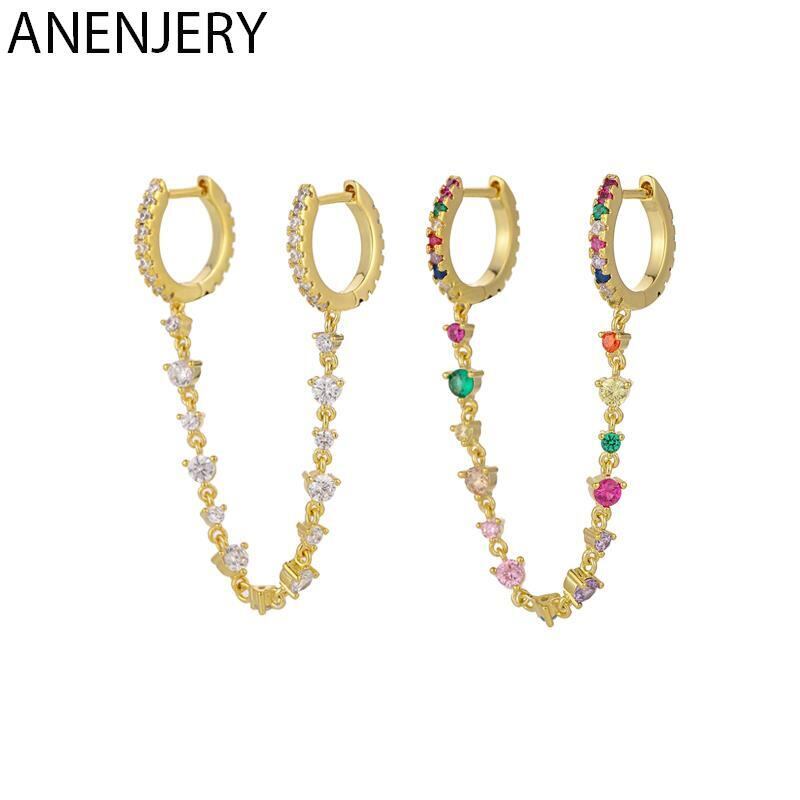 送料無料 ANENJERY1PCカラフルなジルコンTelダブルハギーイヤリング女性2サークルチェーンフープイヤリングジュエリー 指輪 アクセサリー AE165548265031188