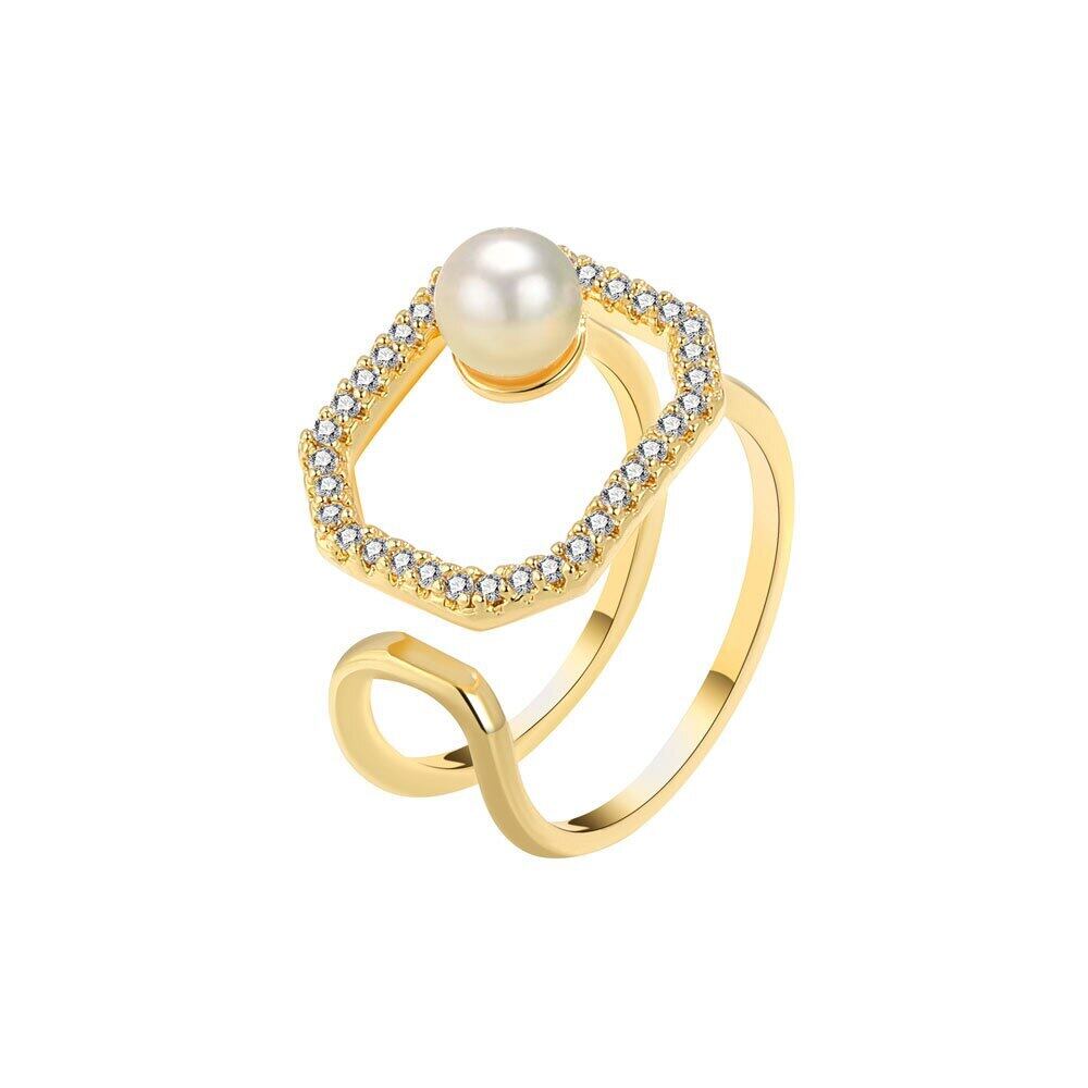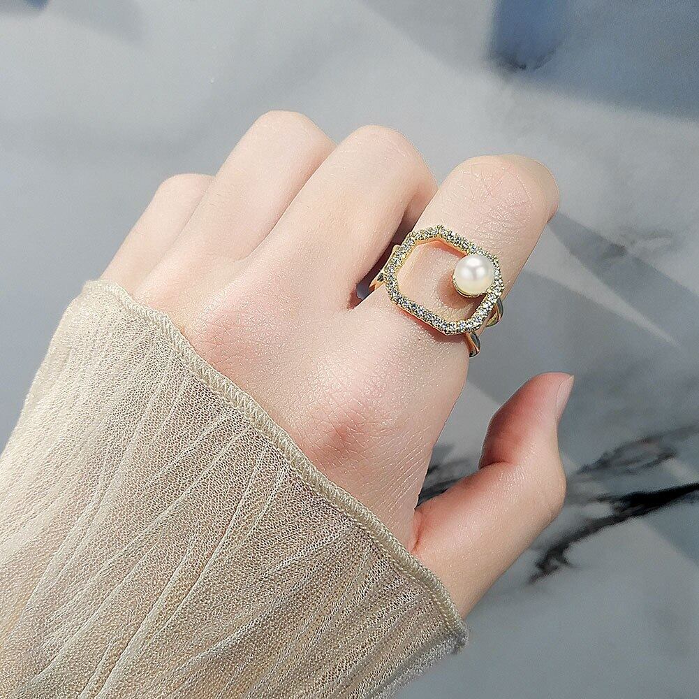 送料無料 夏のパーソナリティパールオープンリングニッチインスタイルシンプルな気質幾何学的なスクエアリング女性のジュエリー サマー 夏物 指輪 真珠 スクウェア アクセサリー AE165586957188127