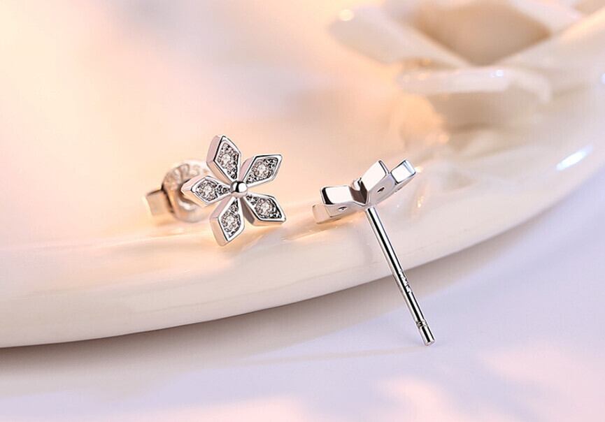 送料無料 ANENJERYシルバーカラーホットジルコン桜フラワーイヤリングレディースイヤリングbrincosoorbellenS-E185 指輪 フラワーデザイン 銀 アクセサリー AE165595248967432