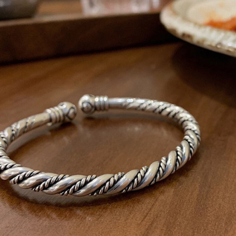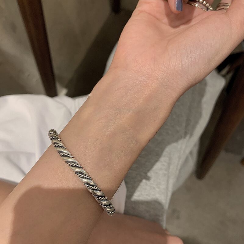 送料無料 ANENJERYシルバーカラー銅ツイストパターンブレスレットバングル女性男性ヴィンテージクールタイシルバージュエリーギフト 銀 ビンテージ アクセサリー AE165552845995619