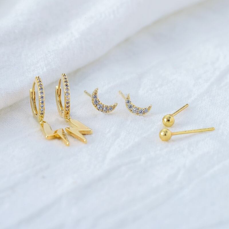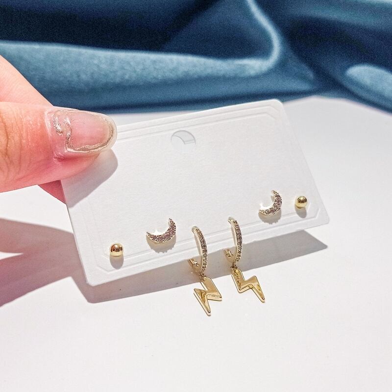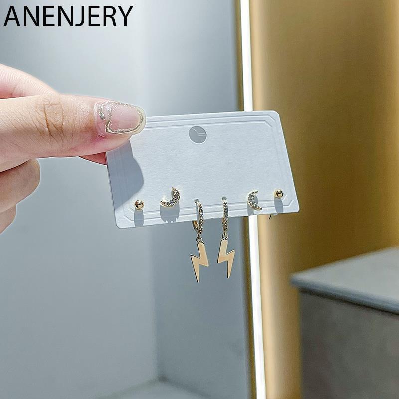 送料無料 ANENJERYシルバーカラー銅マイクロジルコン幾何学的なムーンビーズペンダントフープイヤリング女性6ピースイヤリングセット 指輪 銀 アクセサリー AE165512870405455