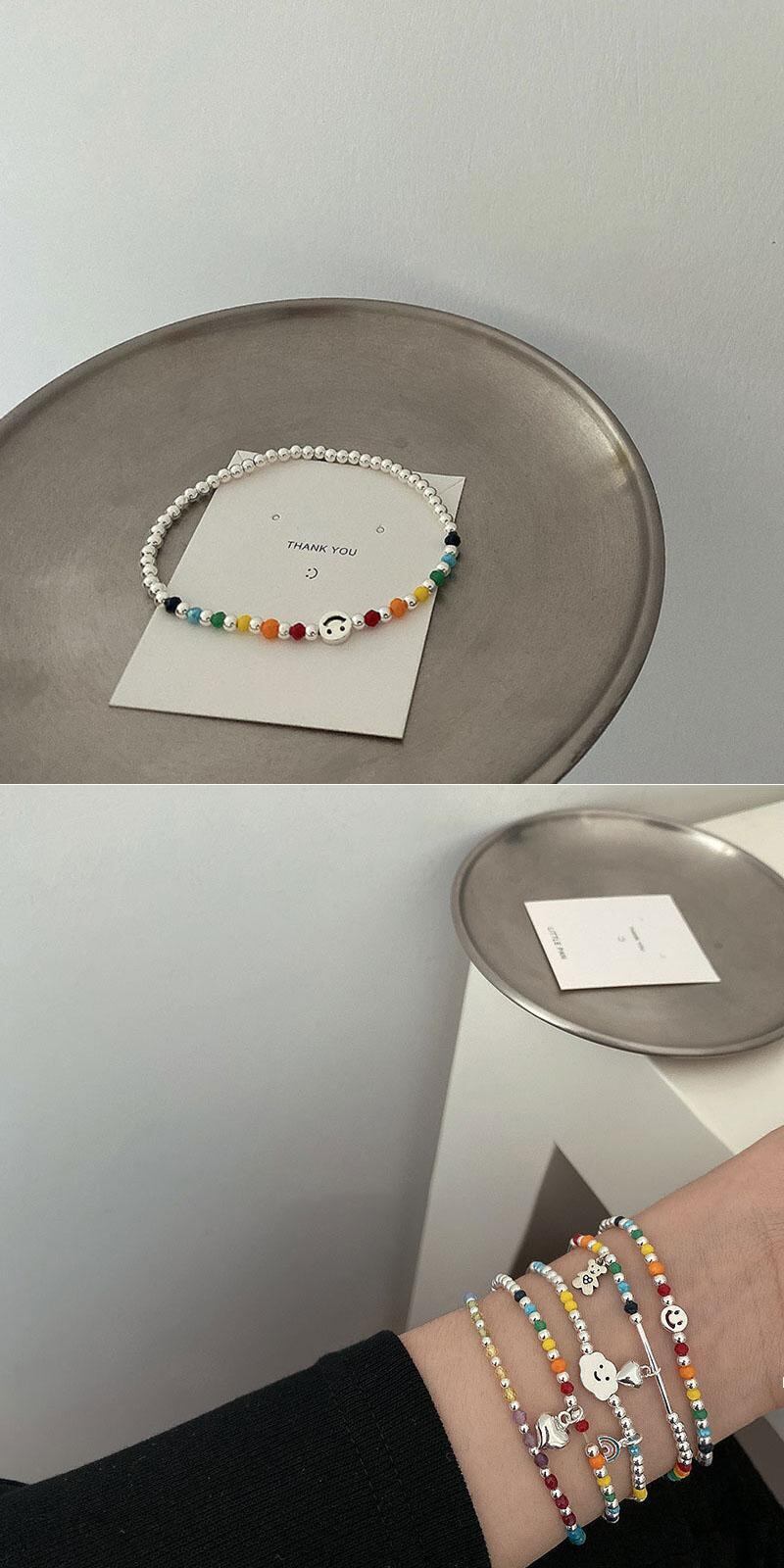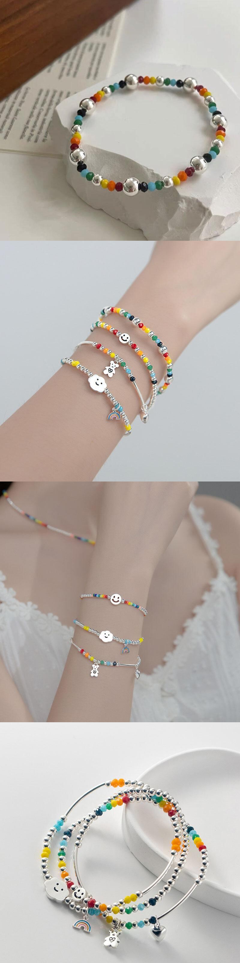 送料無料 ANENJERYシルバーカラーカッパーインクラウドベアカラービーズブレスレット女性スウィートハンドメイドジュエリー 大人ガーリー キュート カジュアル 銀 アクセサリー AE165517527397644