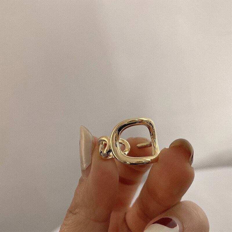 送料無料 ANENJERYシルバーカラーフレンチメタルリング女性男性スクエアビーズGermoetricアジャスタブルリングパーティージュエリー 指輪 銀 スクウェア アクセサリー AE165522667094519