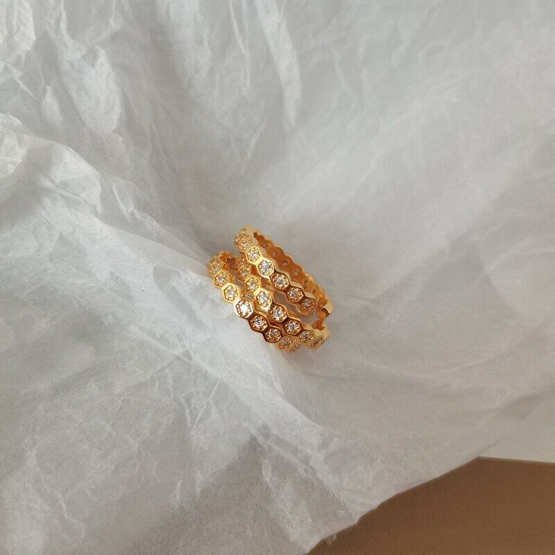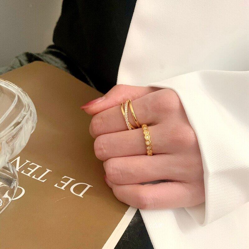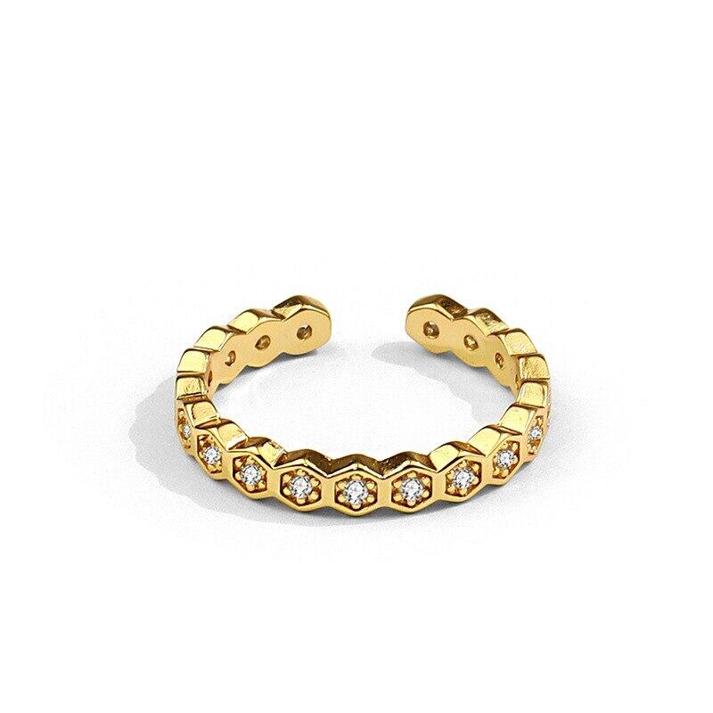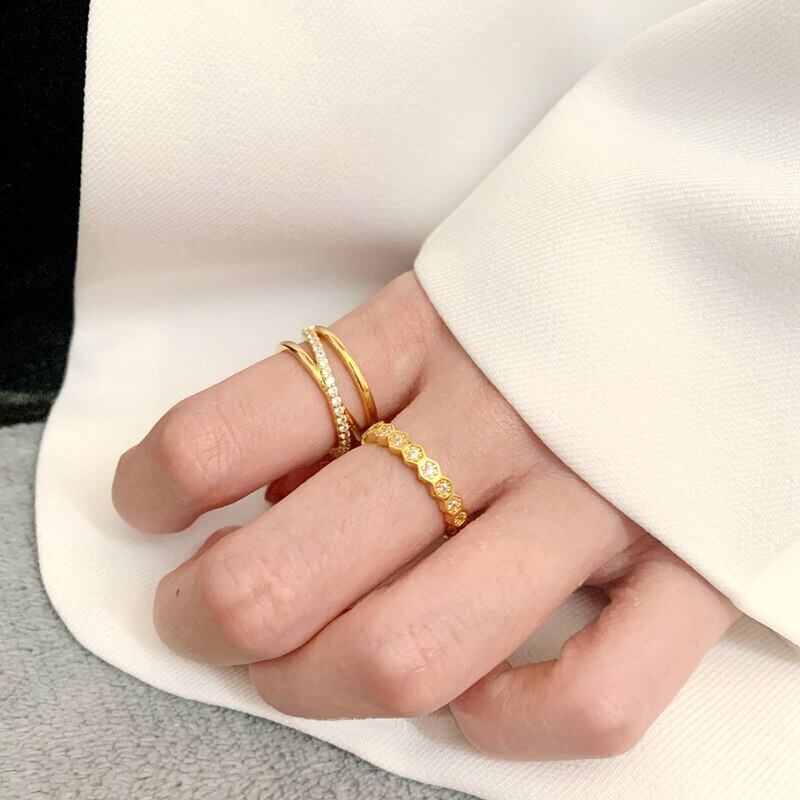 送料無料 ANENJERYシルバーカラージルコンリングレディースラグジュアリーゴールドヘキサゴン結婚指輪ジュエリー2022 銀 アクセサリー AE165568152237149