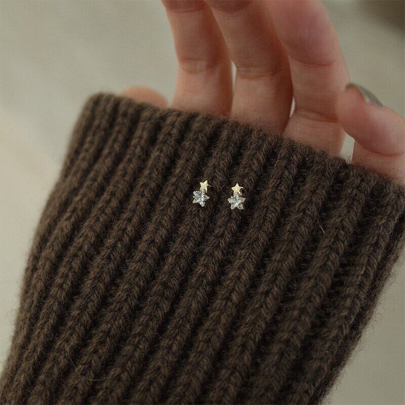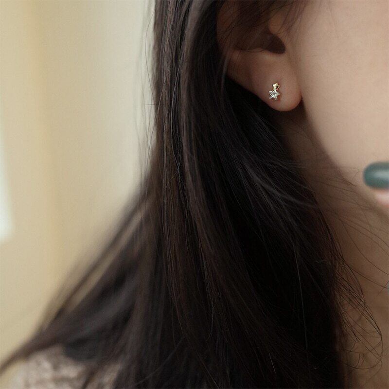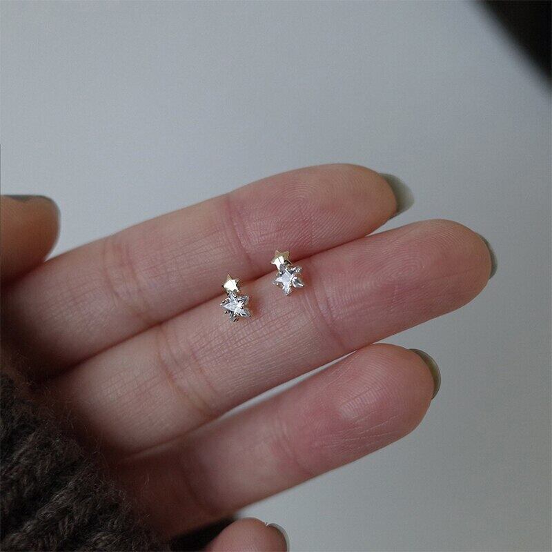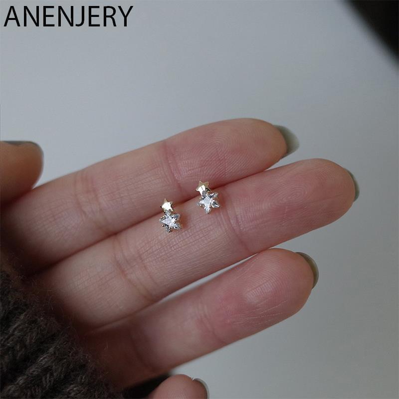 送料無料 ANENJERYシルバーカラーマイクロジルコンシャイニングペンタグラムスタッドピアス女性ミニデリケートライトラグジュアリージュエリー イヤリング リング 指輪 銀 アクセサリー AE165532131795975