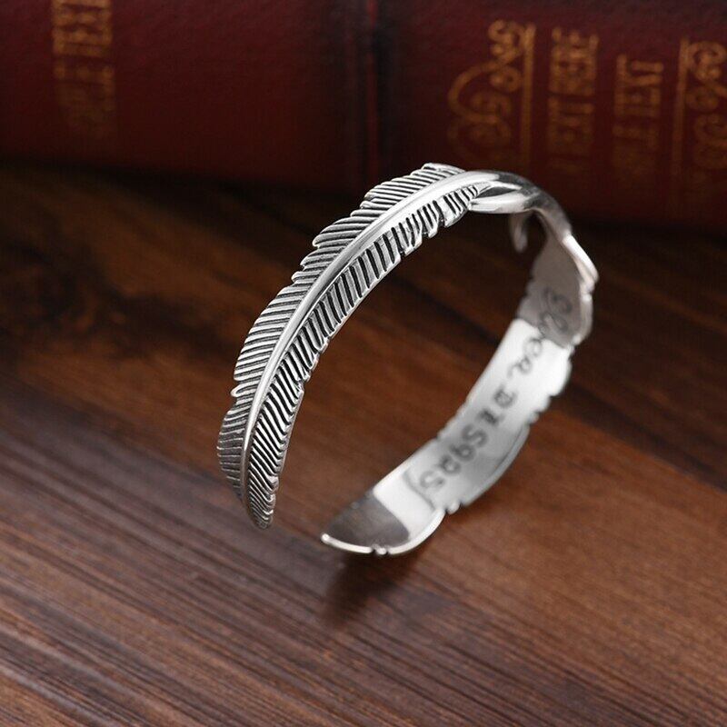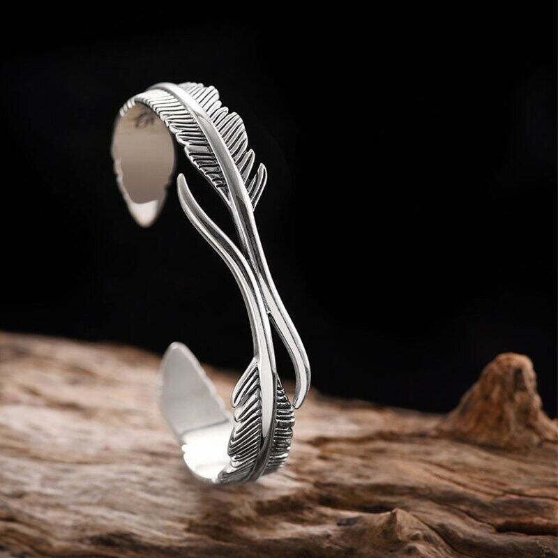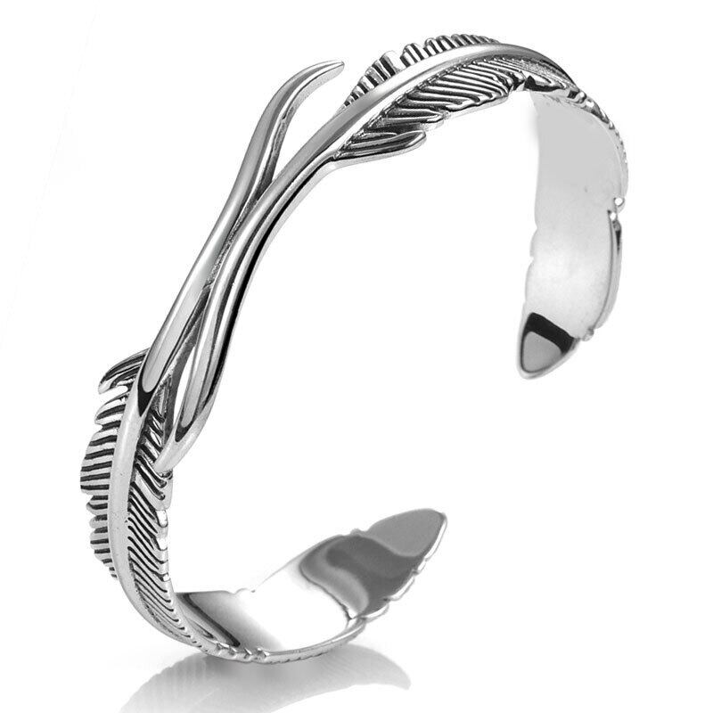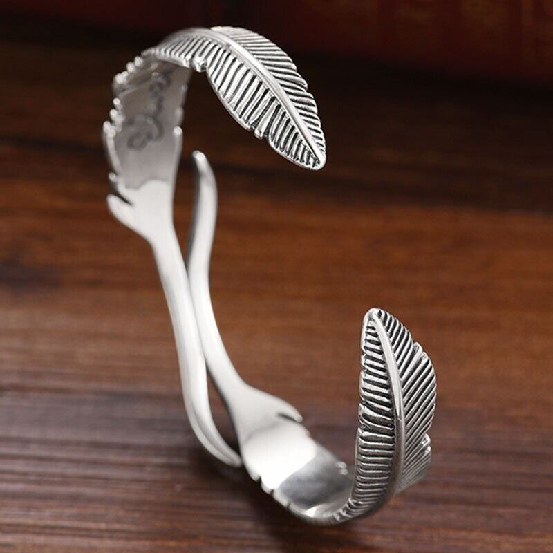 送料無料 ANENJERYシルバーカラーフェザーリーブカフブレスレット&バングルレディースメンズヴィンテージタイシルバーハンドジュエリー 銀 ビンテージ アクセサリー AE165589111599156