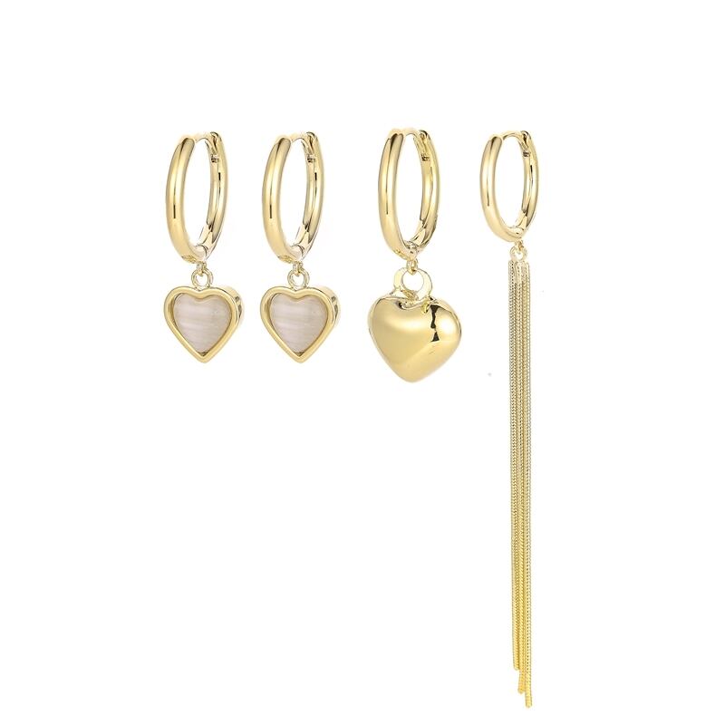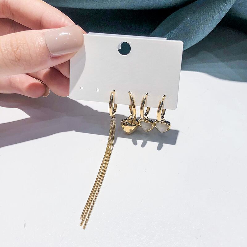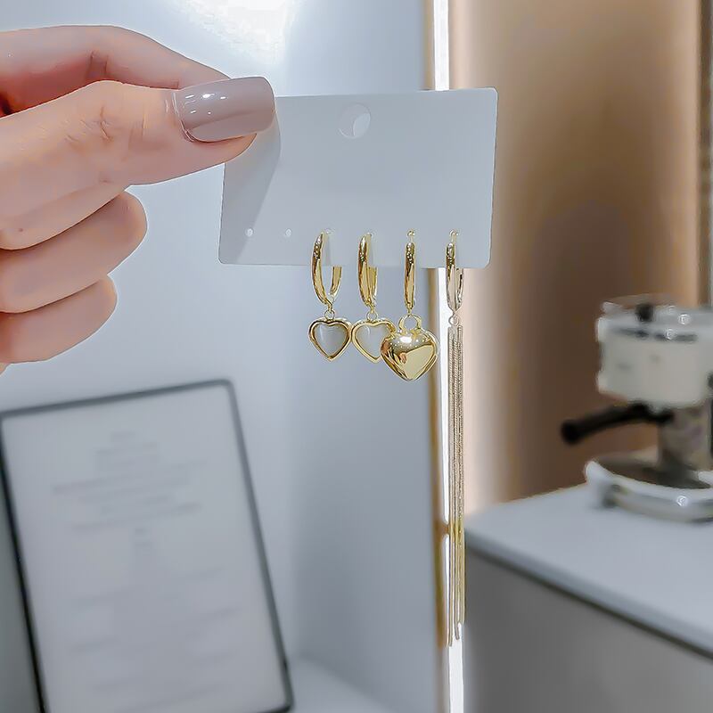 送料無料 ANENJERYシルバーカラーカッパーオパールラブヒアロングTelイヤリングピースイヤリングセットジュエリー 蛋白石 指輪 銀 アクセサリー AE165592868546906