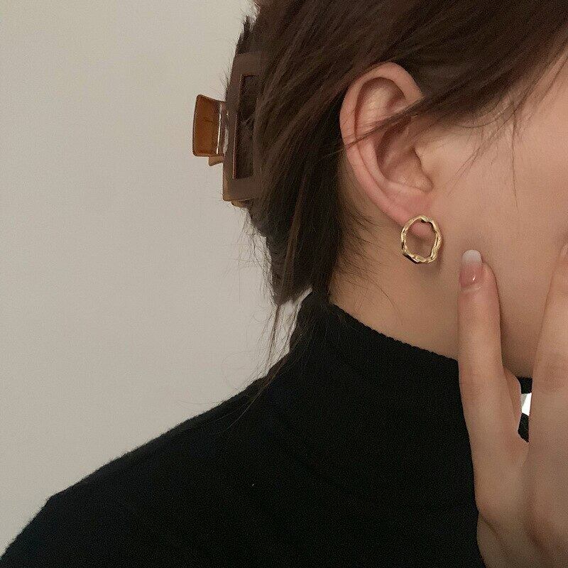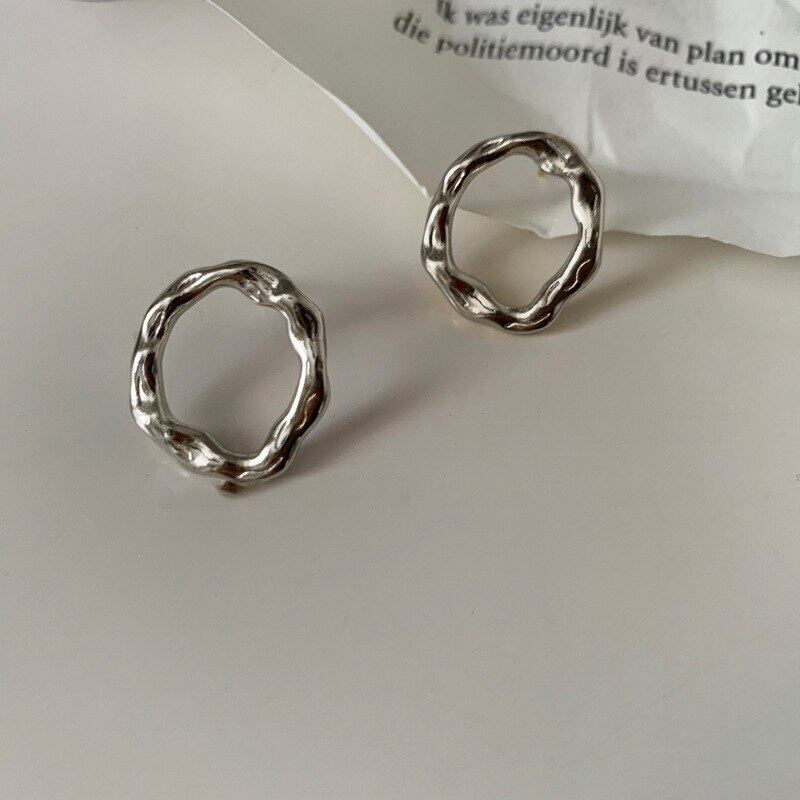 送料無料 ANENJERYシルバーカラーイレギュラーサークルスタッドピアスレディース幾何学的ゴールドスタッドピアスジュエリー イヤリング リング 指輪 銀 アクセサリー AE165559010753513