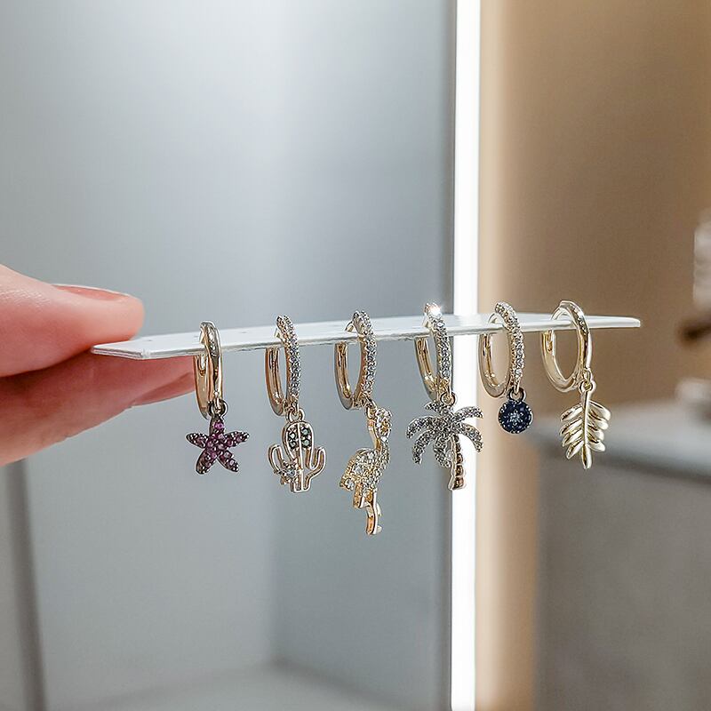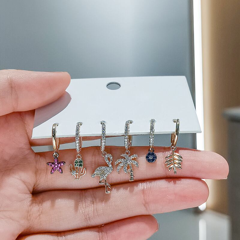 送料無料 ANENJERY6個/セットシルバーカラーカッパースターバードツリーリーフブルーアイフープピアスセット女性マイクロジルコンパーティージュエリー イヤリング リング 指輪 銀 アクセサリー AE165570287449222