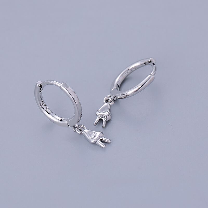 送料無料 ANENJERYシルバーカラーカッパービクトリージェスチャペンダントフープピアス女性シンプルクリエイティブノベルティジュエリーギフト イヤリング リング 指輪 銀 アクセサリー AE165554903463366