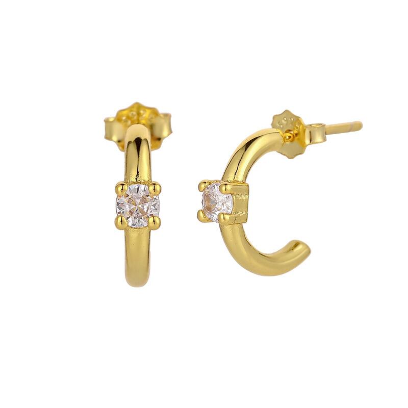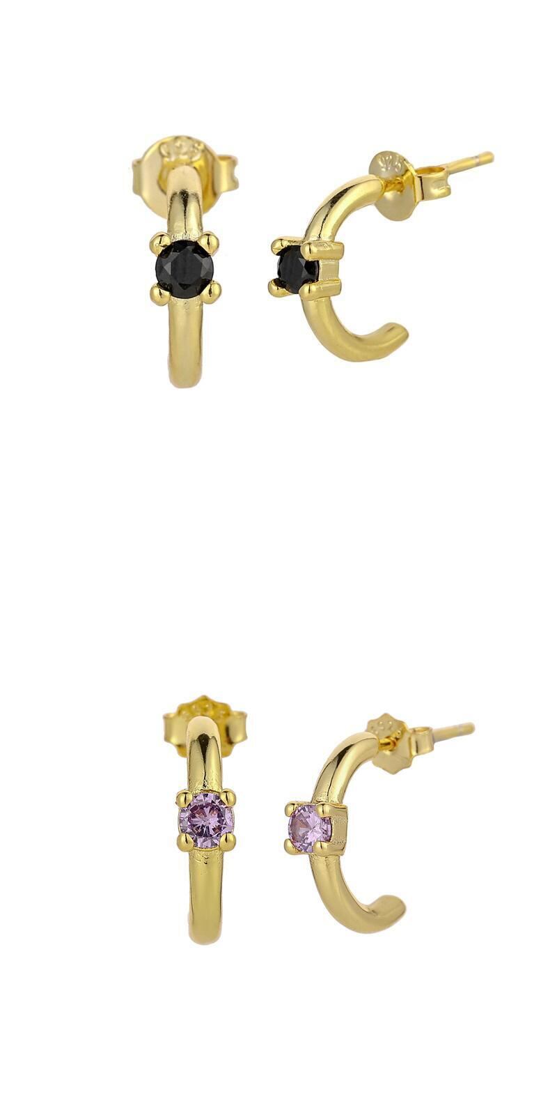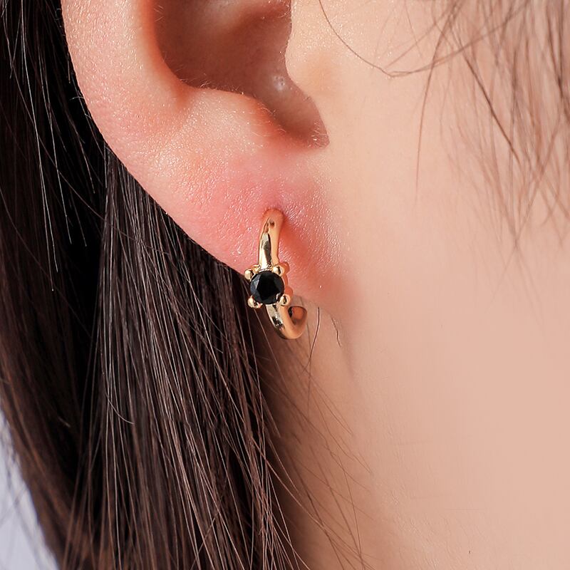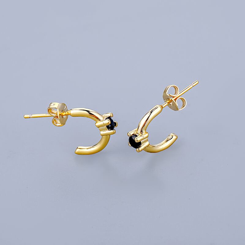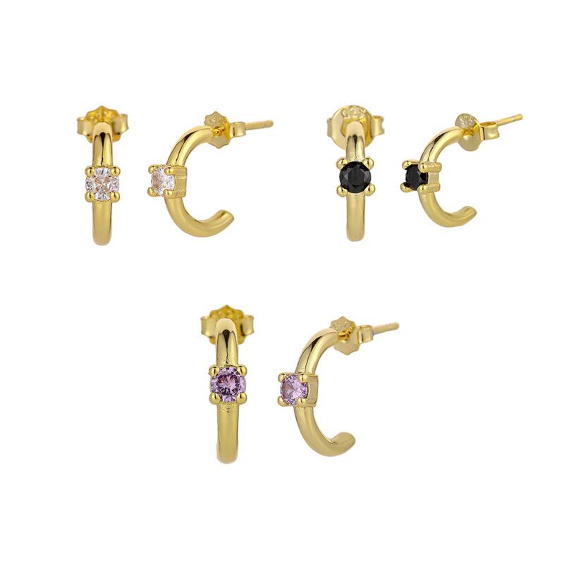 送料無料 ANENJERYシングルジルコンゴールドメッキCシェイプハギーイヤリング女性クリックジュエリーガールズ アクセサリー AE165583250772307