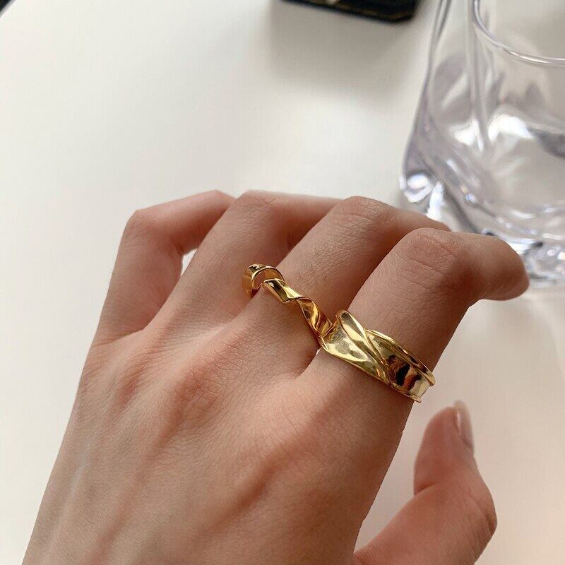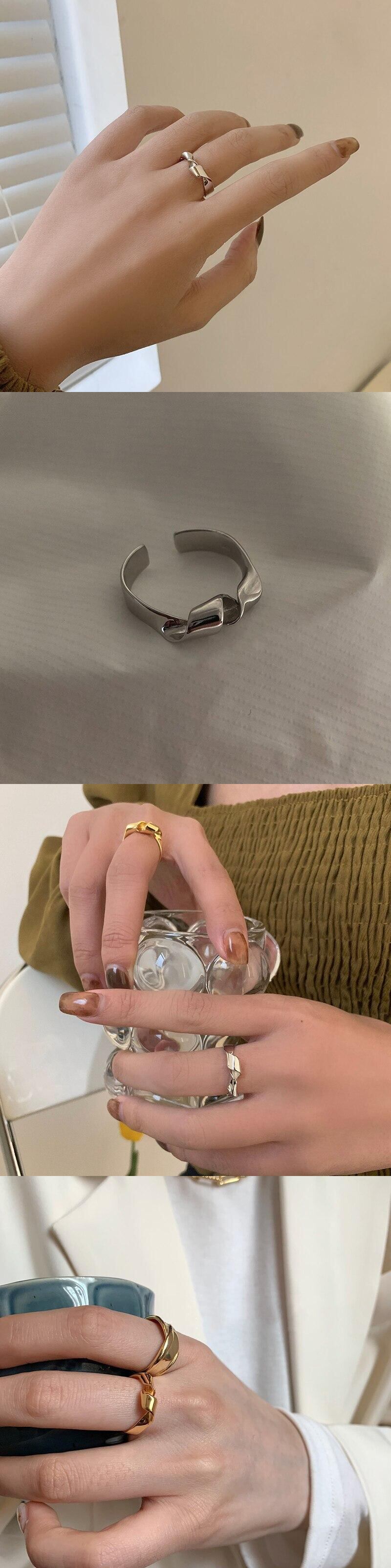 送料無料 ANENJERYシルバーカラーツイストノットリング女性男性不規則な曲線のテクスチャオープンリングパーティージュエリー 指輪 銀 アクセサリー AE165518172337340