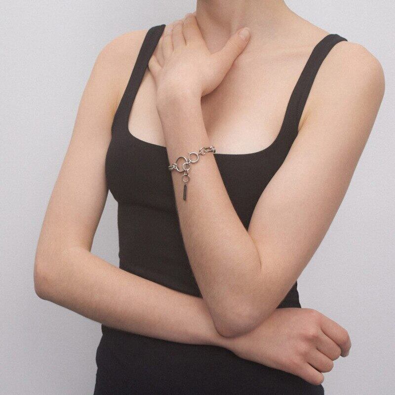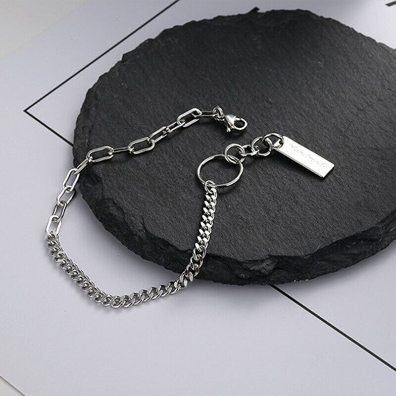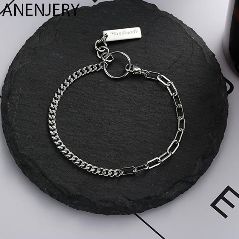 送料無料 ANENJERYシルバーカラースプライシングチェーンブレスレット女性幾何学的ブレスレットパーティーファインジュエリー 銀 アクセサリー AE165541058071697