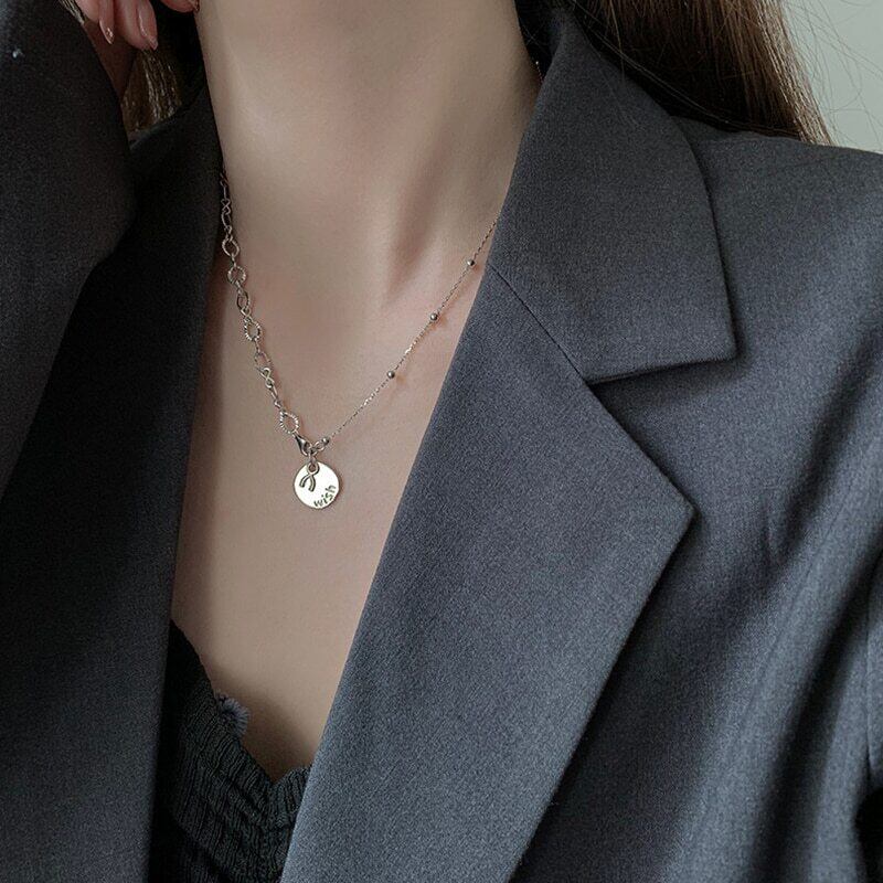 送料無料 ANENJERYシルバーカラー非対称チェーンコインペンダントネックレス女性Mnimalist鎖骨チェーンチョーカーパーティージュエリー レース 銀 アクセサリー AE165555867369510