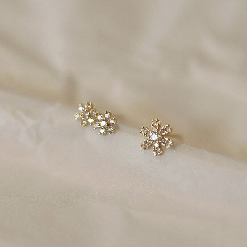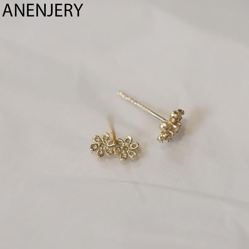 送料無料 ANENJERYシルバーカラーマイクロジルコンフラワーアシンメトリーイヤースタッドピアスレディースシンプルミニニッチアクセサリー イヤリング リング 指輪 フラワーデザイン 銀 アクセサリー AE165566494234603