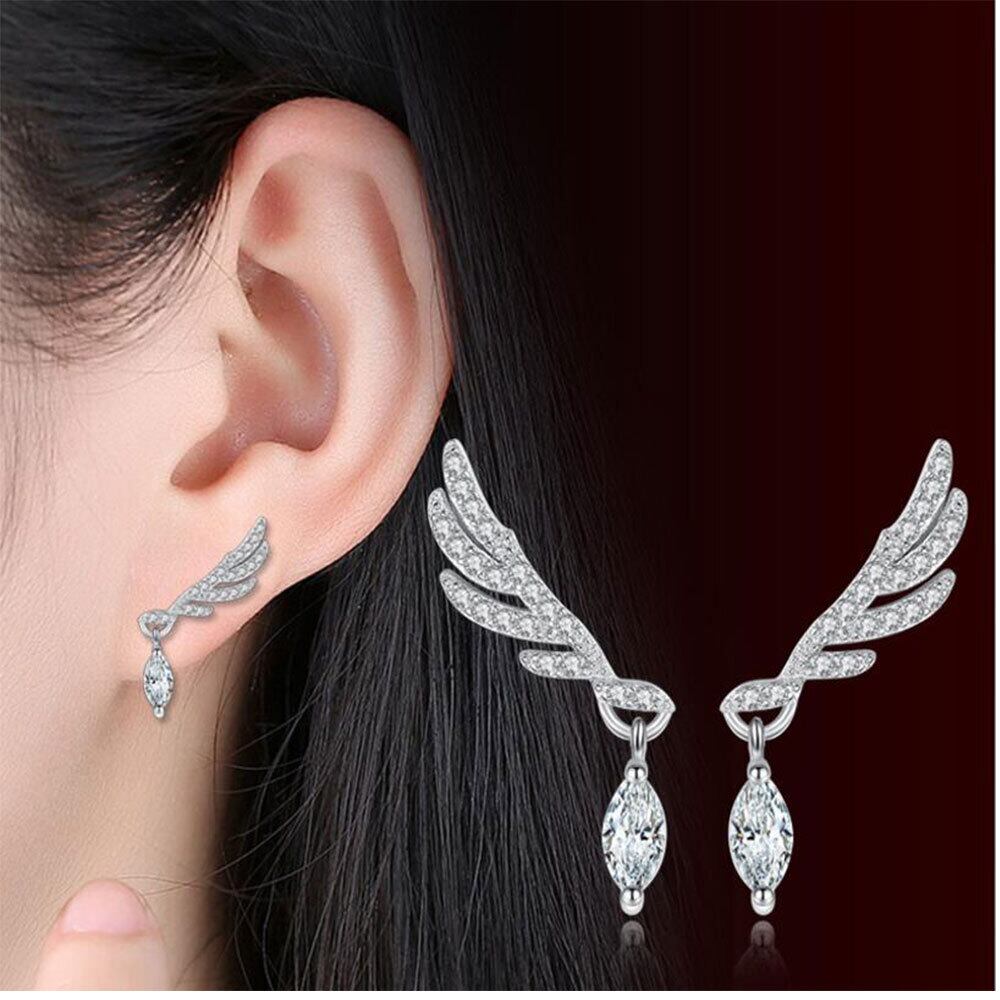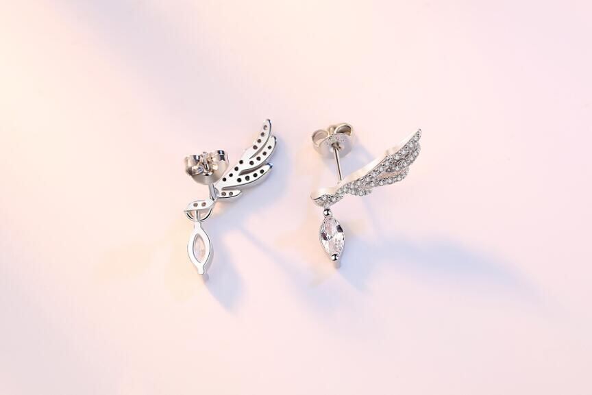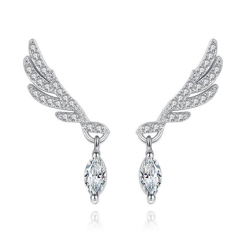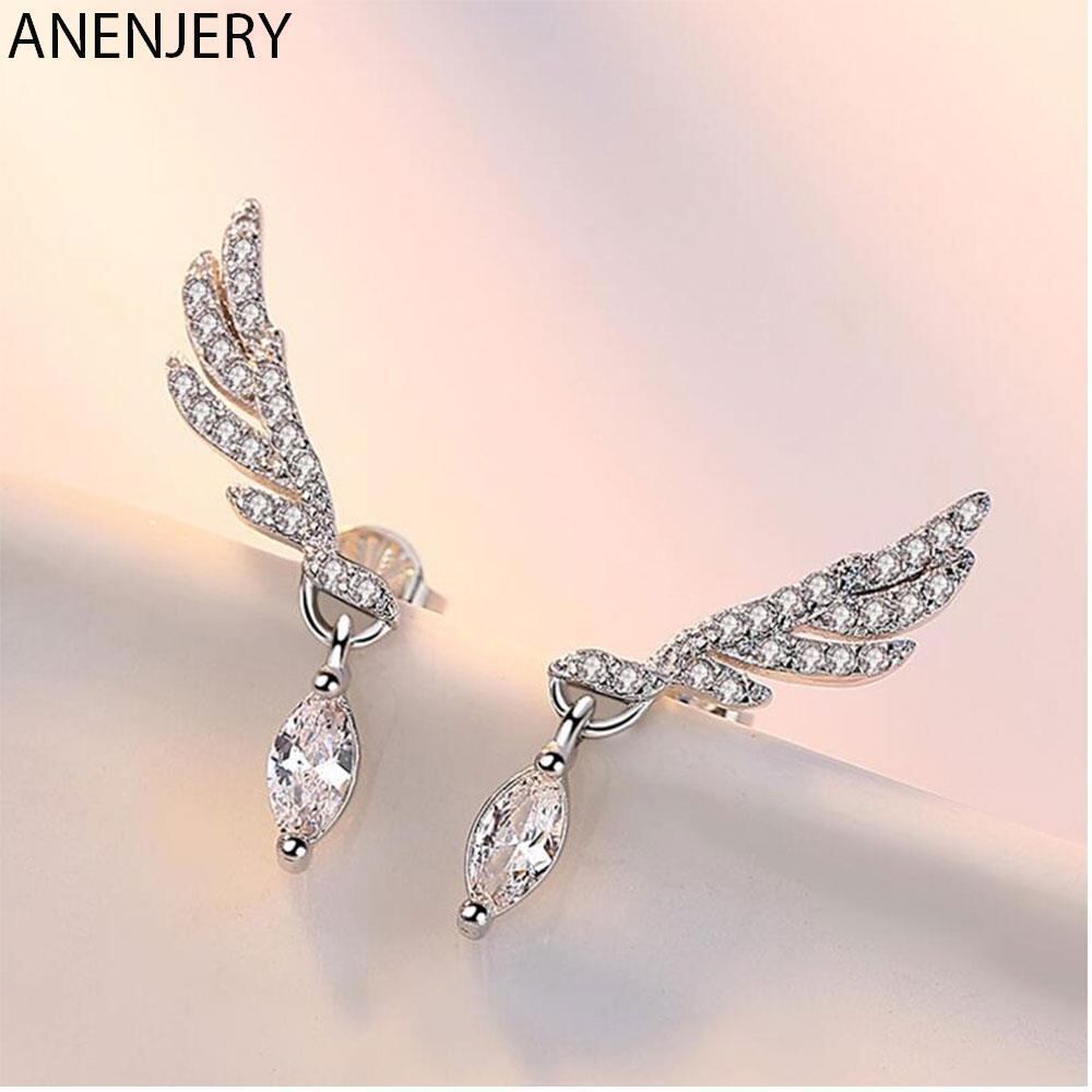 送料無料 ANENJERYシルバーカラーアングルウィングフェザーイヤリングウォータージルコンレディースウェディングクリスマスジュエリーS-E268 指輪 銀 アクセサリー AE165535138972308