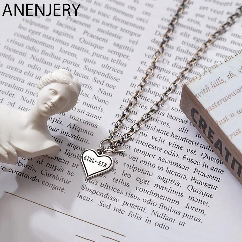 送料無料 ANENJERYシルバーカラーヴィンテージラブハートタイシルバーネックレス女性ヒップホップOTクラスプチェーンネックレスジュエリーギフトS-N531 レース 銀 ビンテージ アクセサリー AE16551040908083