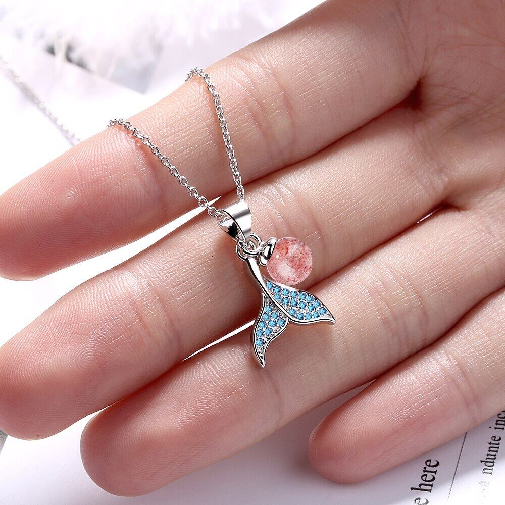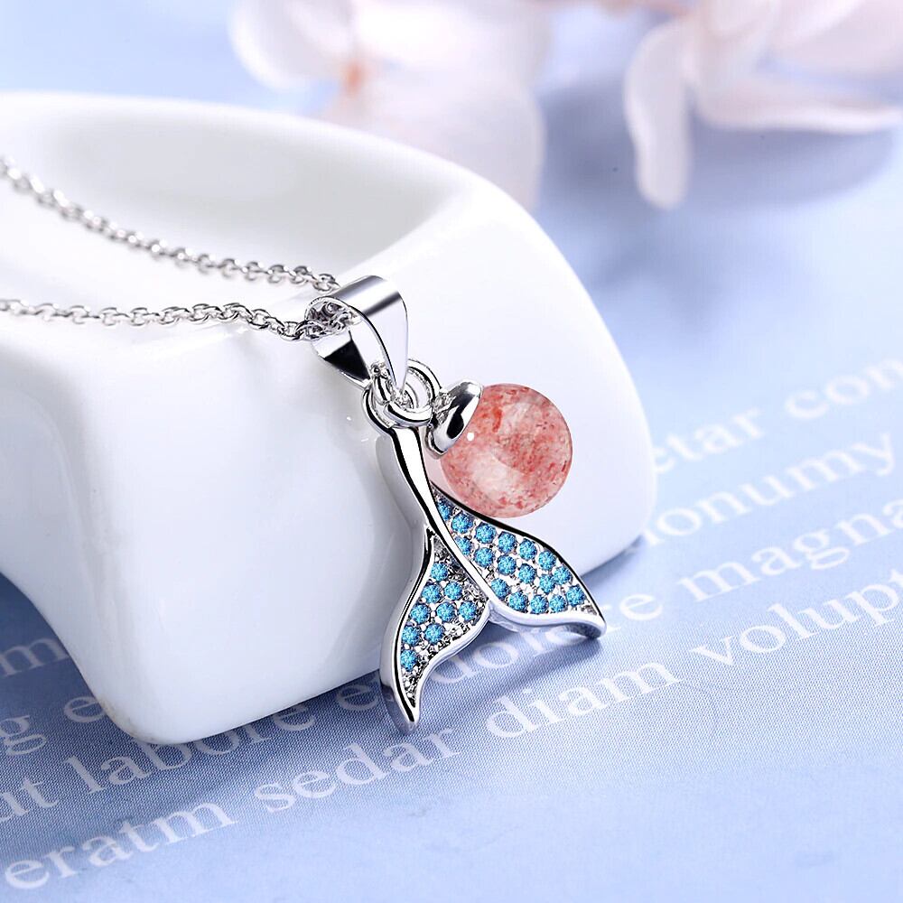 送料無料 ANENJERYシルバーカラーマーメイドフィッシュテールネックレス、ナチュラルストロベリークリスタルキュービックジルコニアジュエリーレディースギフトS-N450 レース 銀 天然 風信子石 アクセサリー AE165573884230483
