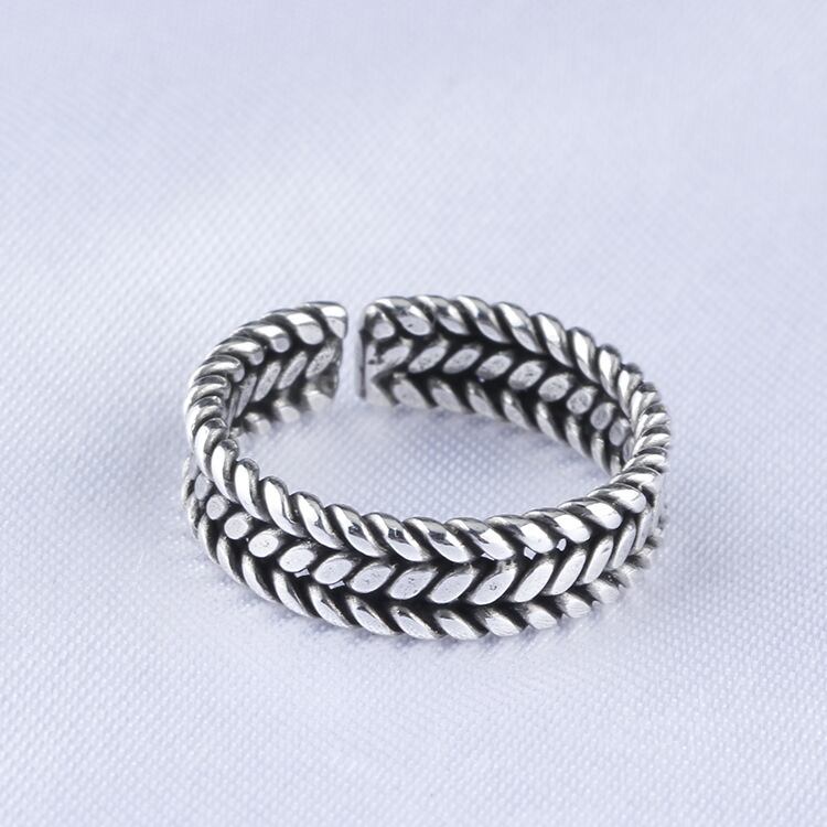 送料無料 ANENJERYシルバーカラースリーロープラインウィートイヤーシェイプヴィンテージアジャスタブルリングジュエリーメンズレディーストレンディシルバーS-R07 指輪 銀 ビンテージ アクセサリー AE165594387006083