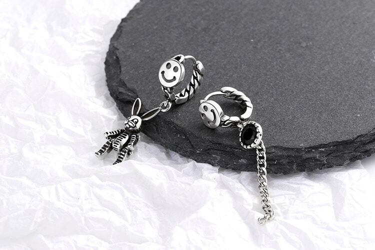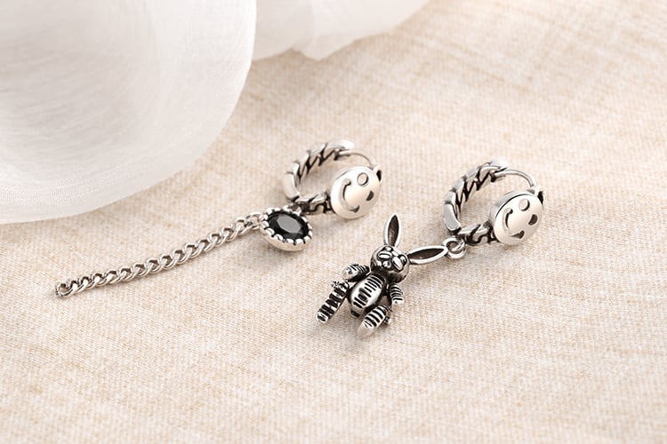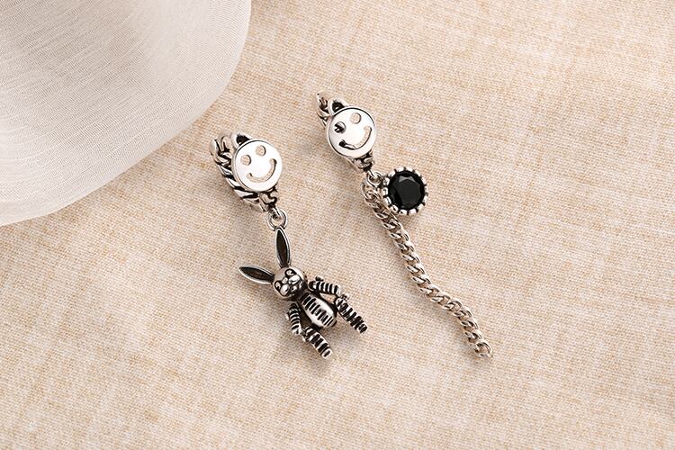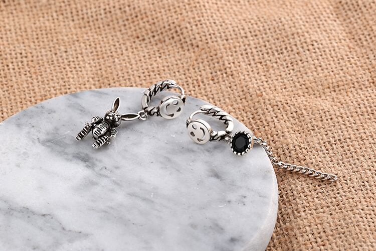 送料無料 ANENJERYシルバーカラースマイルロングテルタイシルバーフープピアスラビットジルコン非対称イヤリングレディースイヤージュエリーS-E1061 指輪 銀 アクセサリー AE165562845339438
