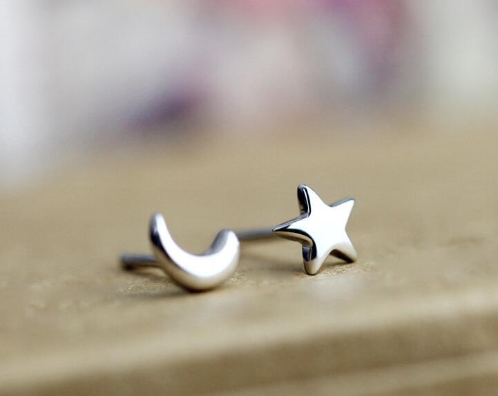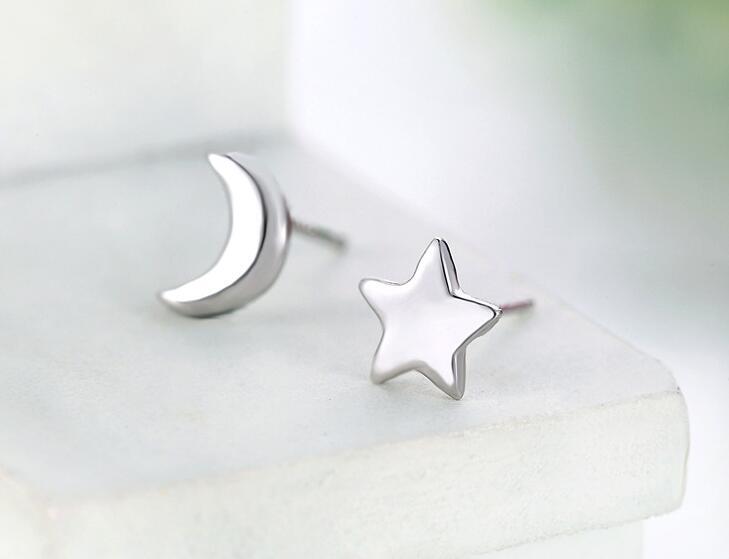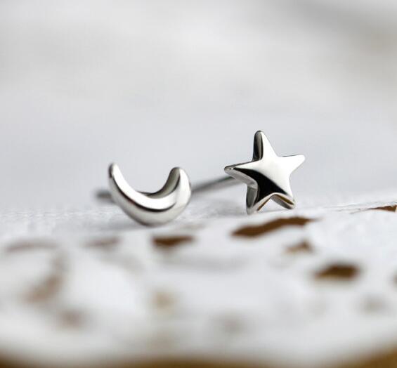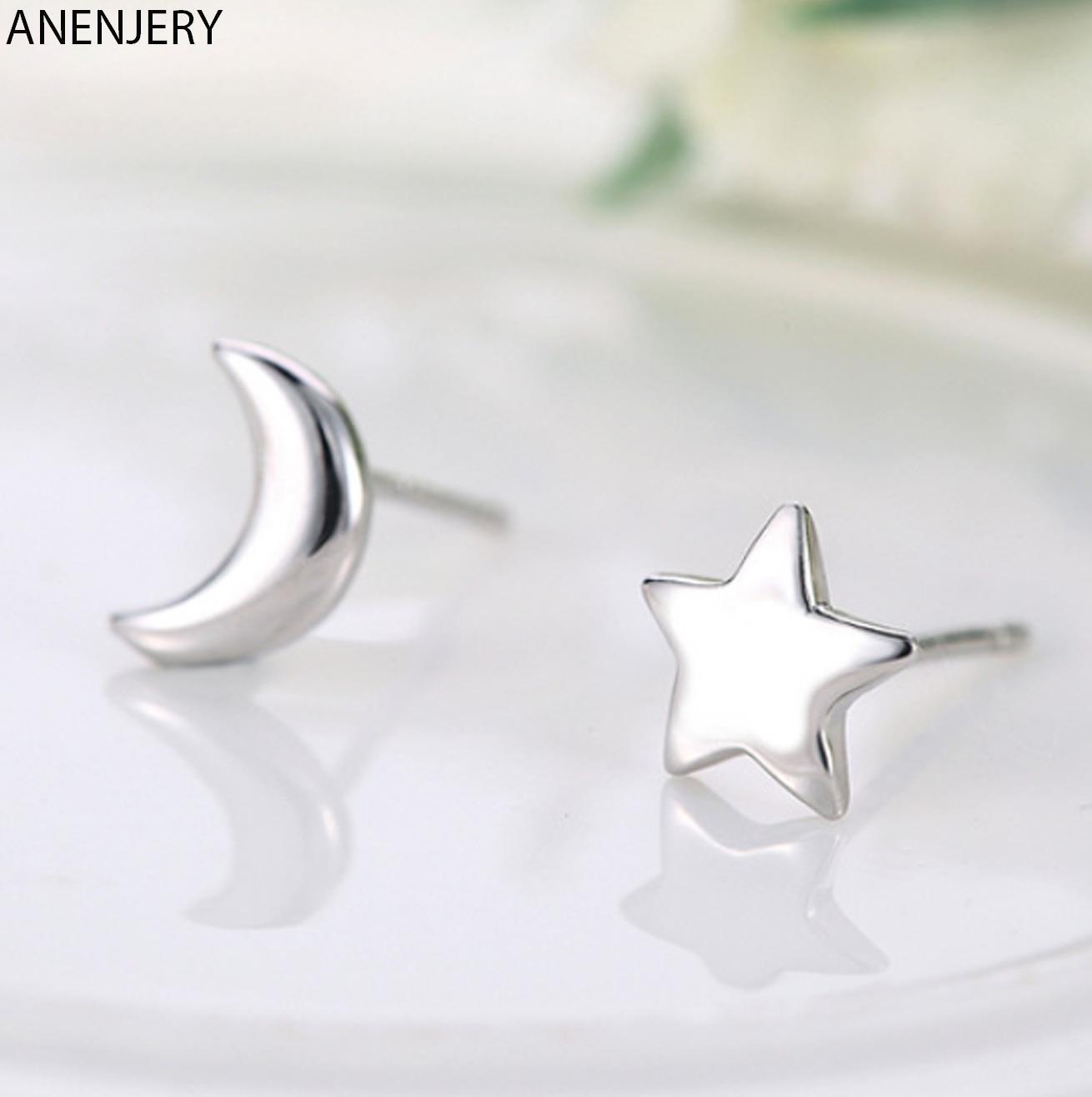 送料無料 ANENJERYシルバーカラーデリケートムーンスター非対称スタッドピアスピアスガールズミニマリストジュエリー発送S-E148 イヤリング リング 指輪 銀 アクセサリー AE165568379754179