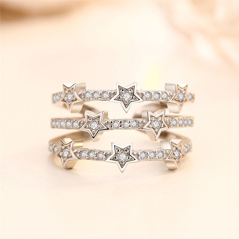 送料無料 ANENJERYシルバーカラーマルチレイヤー幾何学的に輝くクリスタルスターリング女性のパーティージュエリーS-R176 指輪 銀 アクセサリー AE165523327372762