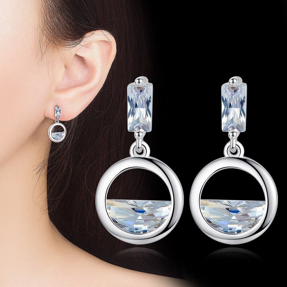 送料無料 ANENJERYシルバーカラーラウンドスプリングウォーターシェイプジルコンイヤリング幾何学サークルジュエリー発送S-E864 春物 指輪 銀 アクセサリー AE16559262287436