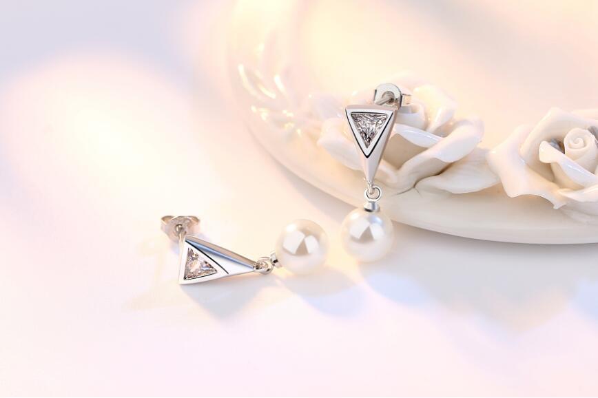 送料無料 ANENJERYシルバーカラー幾何学的な三角形のジルコンウェディングイヤリングブライダルエンゲージメントパールジュエリーアクセサリーS-E244 真珠 指輪 銀 アクセサリー AE165599287669394