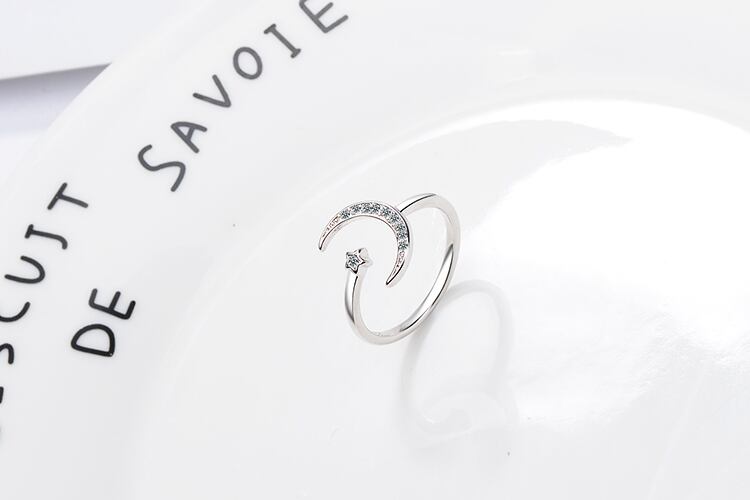 送料無料 ANENJERYシルバーカラートレンディシルバーカラームーンスターオープンフィンガー眩しいジルコンオープンリングレディースガールズジュエリーギフトS-R467 指輪 銀 アクセサリー AE165578003825115
