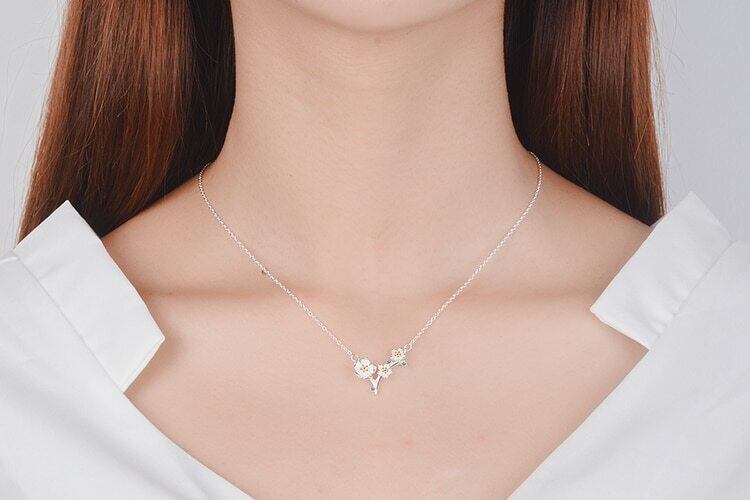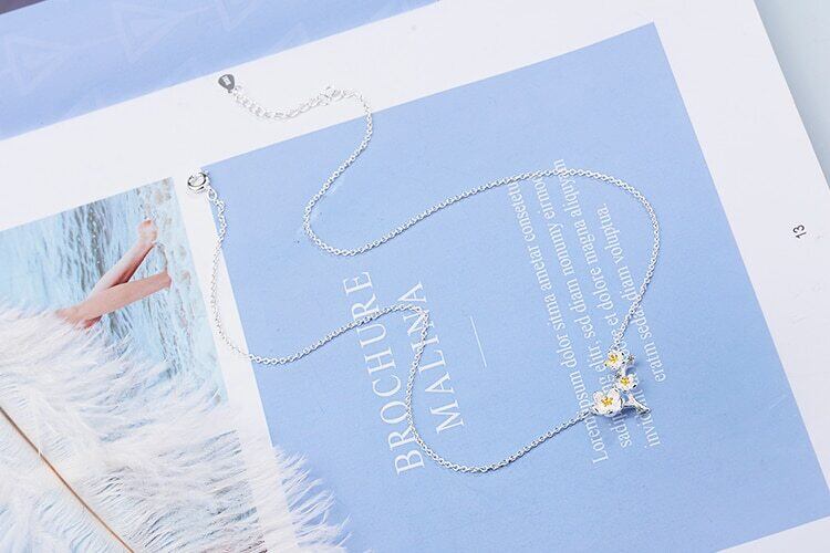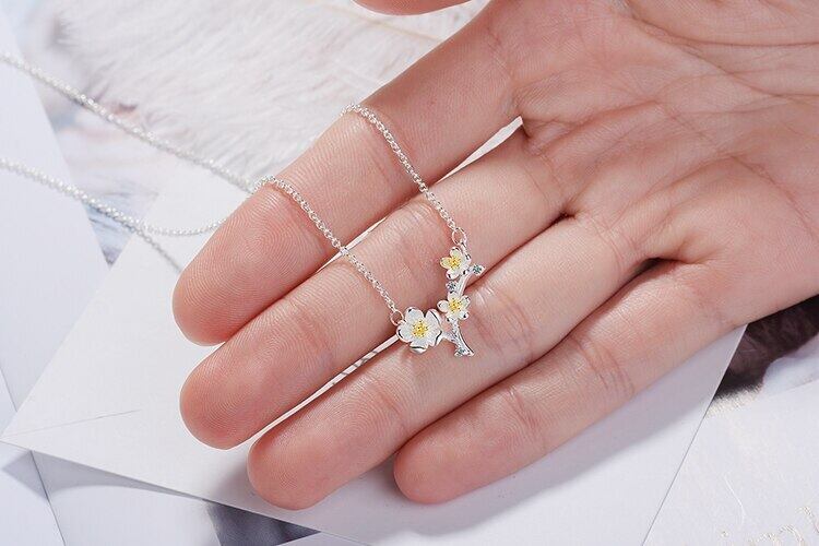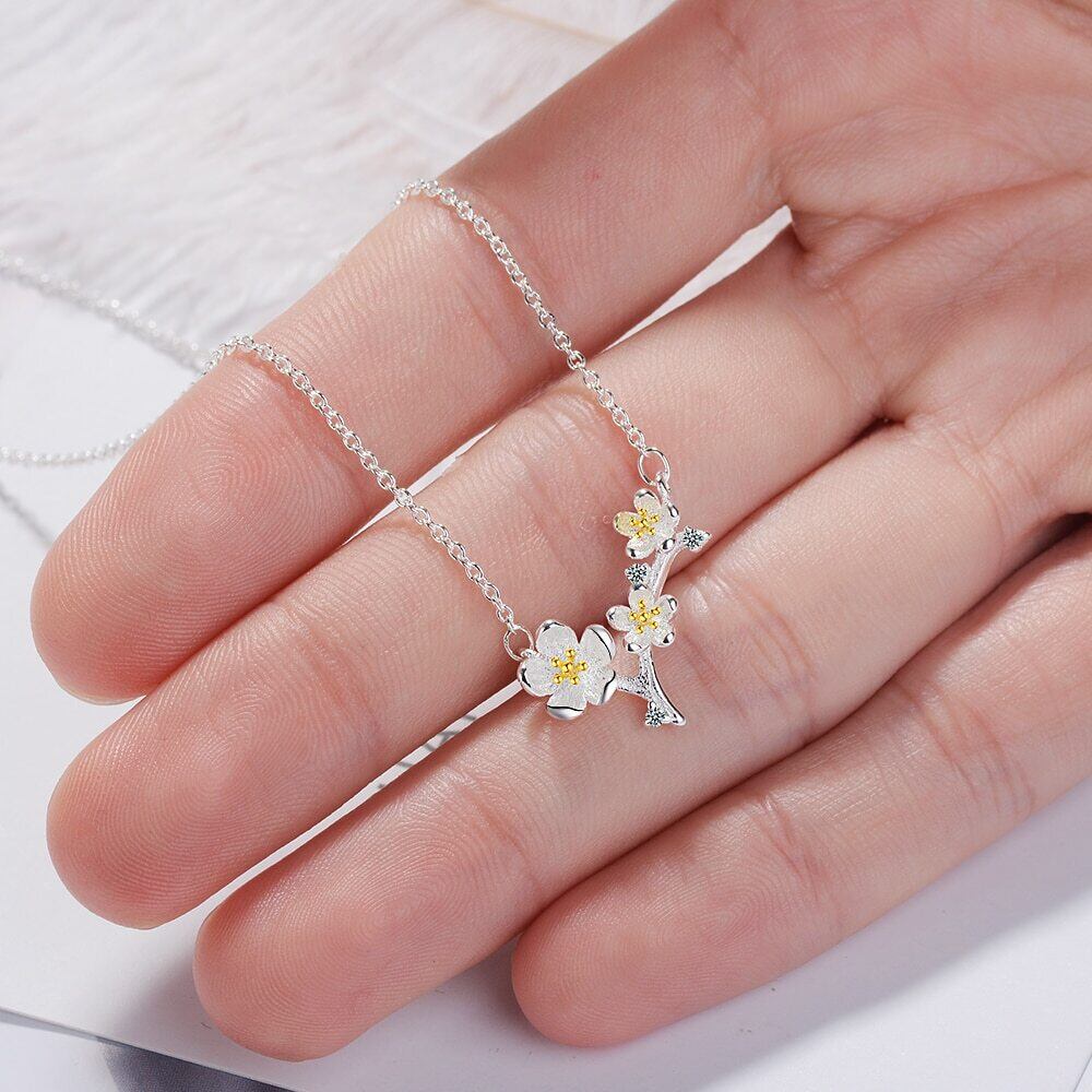 送料無料 ANENJERYシルバーカラーチェリーブロッサムフラワーペンダントネックレスパーティーウェディングジュエリーラバーズギフトS-N338 レース フラワーデザイン 銀 アクセサリー AE165516941779779