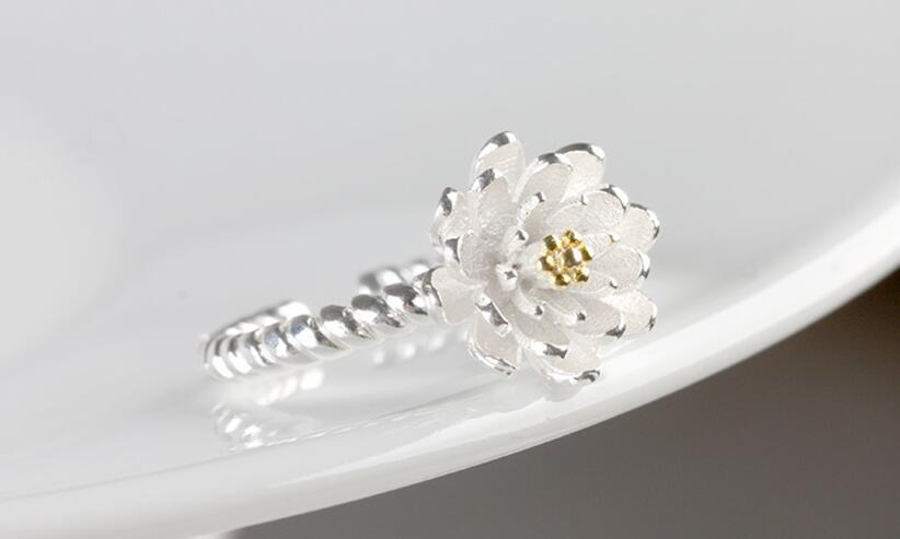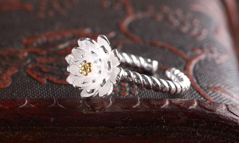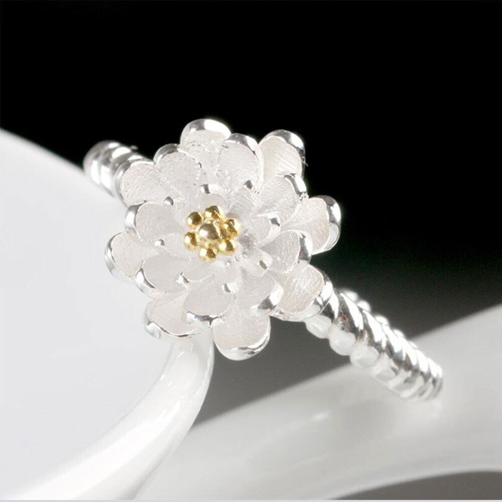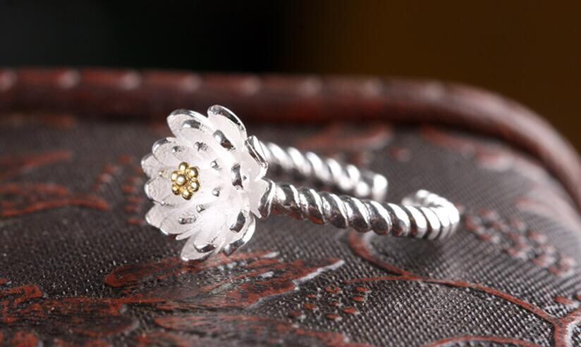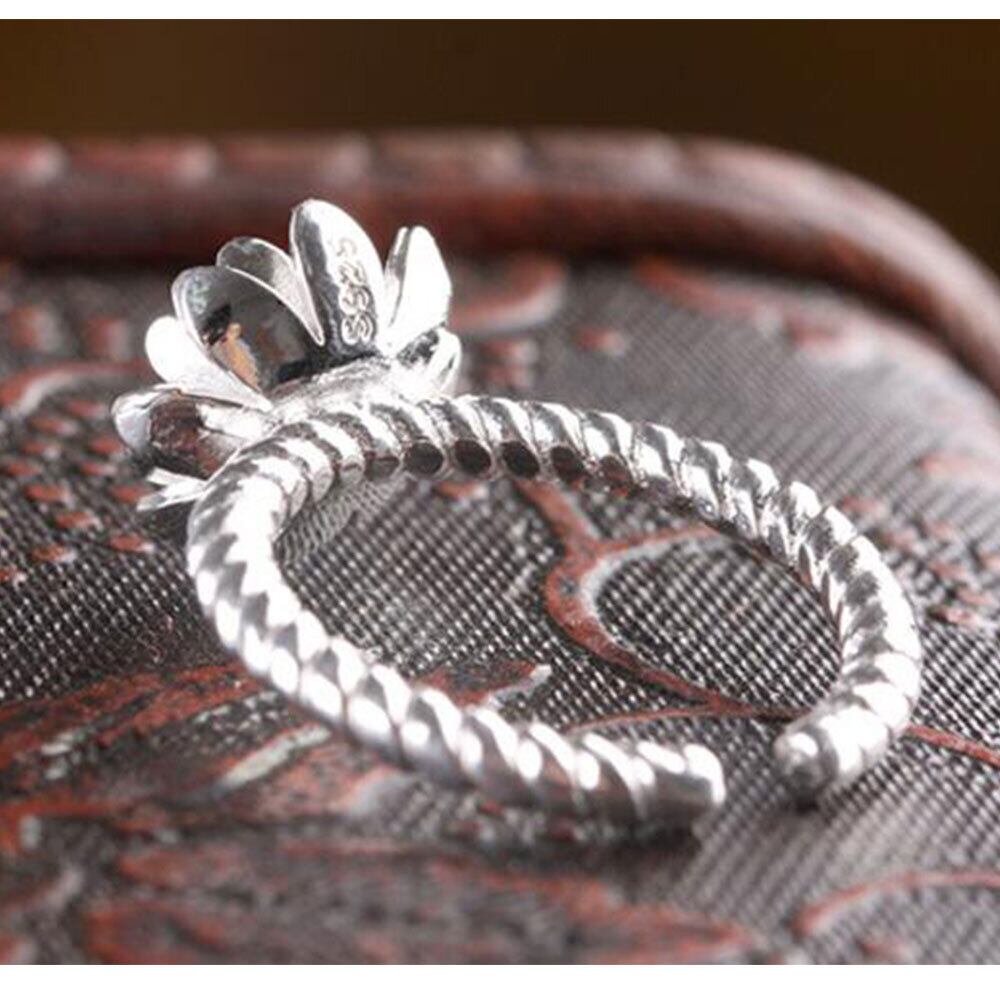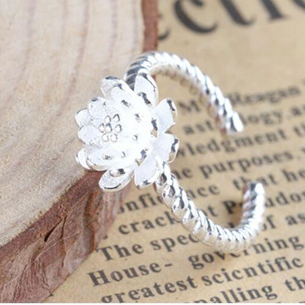 送料無料 ANENJERYシルバーカラーチャーミングなロータスフラワーツイストアジャスタブルオープンリングアニバーサリーシッピングS-R152 指輪 フラワーデザイン 銀 アクセサリー AE165598656782930