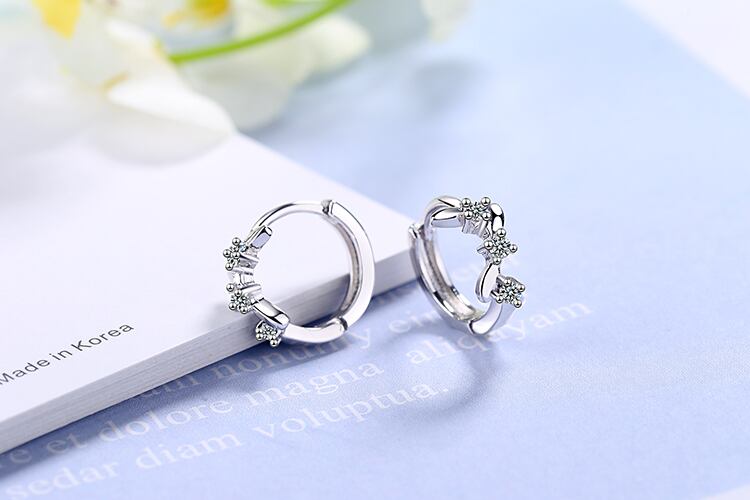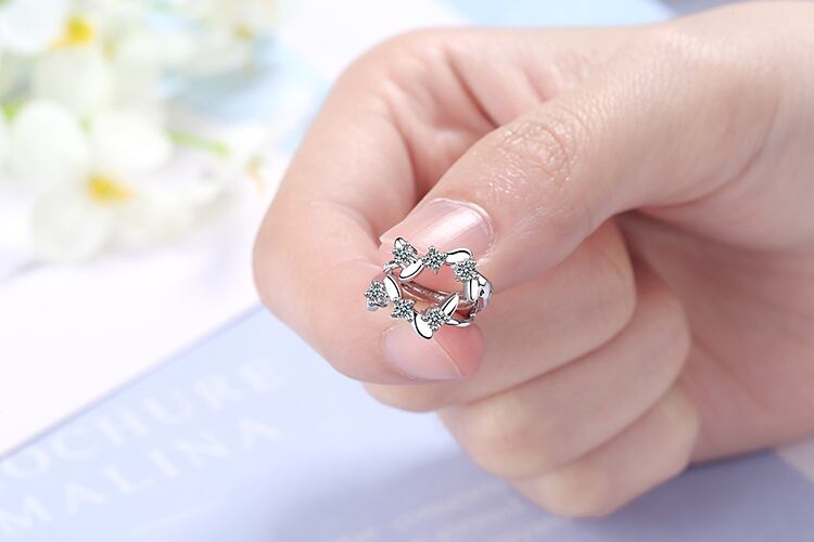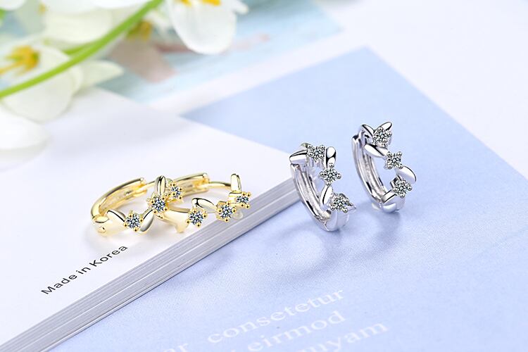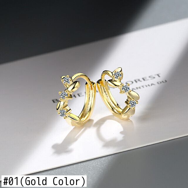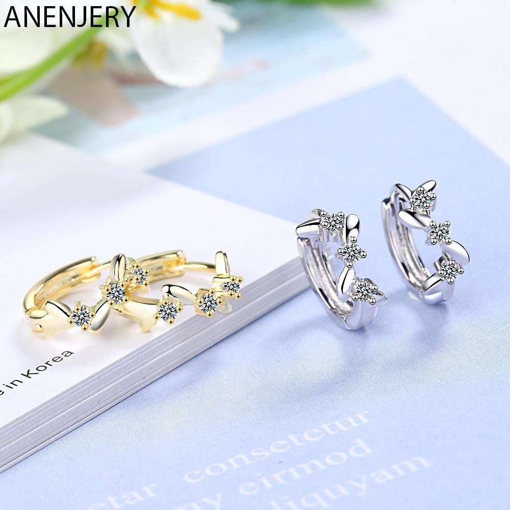 送料無料 ANENJERYシルバーカラーイヤージュエリーゴールドリーフフープイヤリングキュービックジルコンイヤリング女性の誕生日プレゼントS-E980 銀 アクセサリー AE165581664431834
