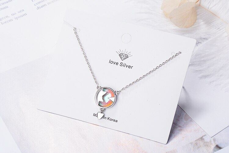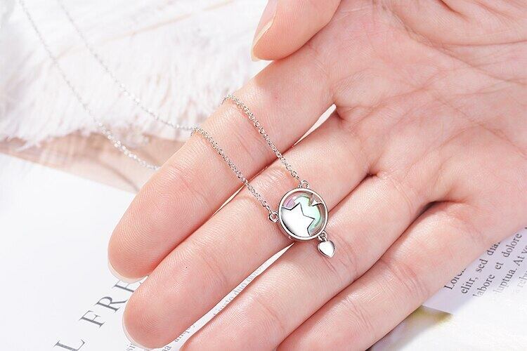 送料無料 ANENJERYシルバーカラーマルチカラームーンストーン鎖骨チェーンネックレスハートペンダントスターチャームジュエリーレディースS-N339 レース 銀 アクセサリー AE16555239545025