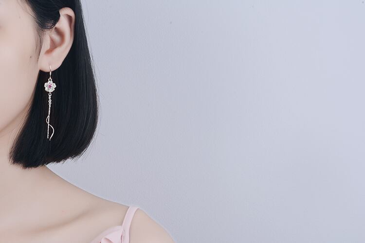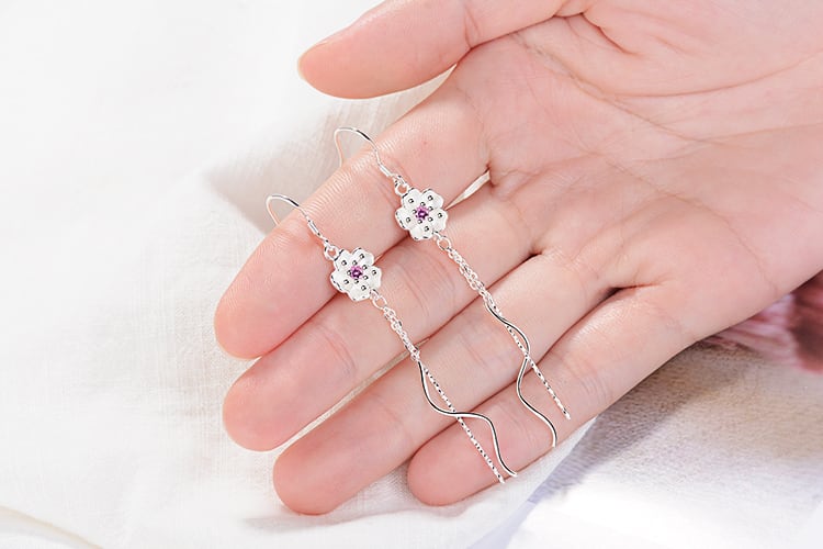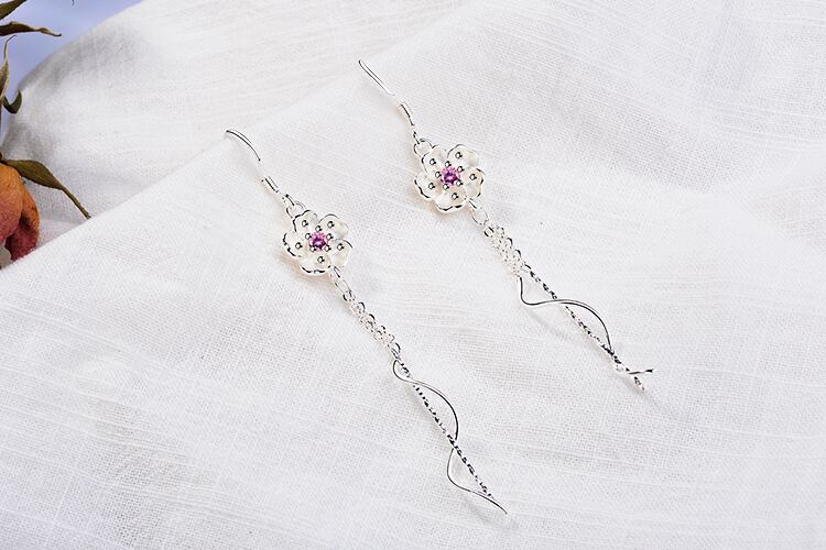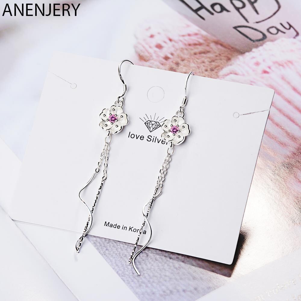 送料無料 ANENJERYシルバーカラー絶妙な桜フラワーウェーブTelイヤリングピンクジルコンジュエリーイヤリング女性S-E669 指輪 フラワーデザイン 銀 アクセサリー AE16558747423807