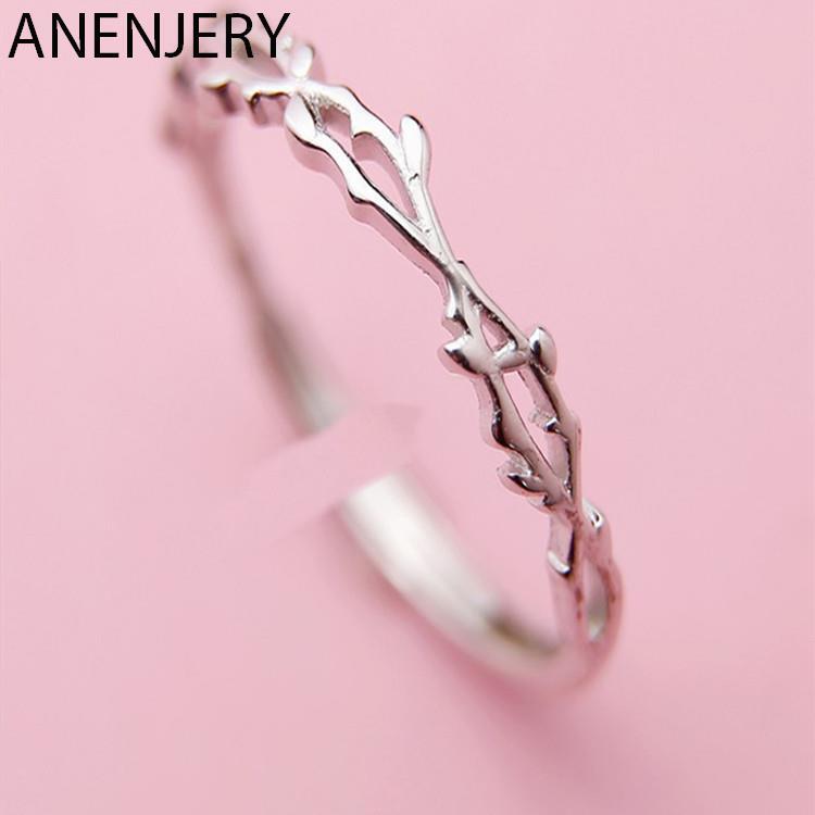 送料無料 ANENJERYシルバーカラーブランチブランブルフィンガーリング女性結婚記念日ジュエリーギフトS-R518 指輪 銀 アクセサリー AE165596285541923
