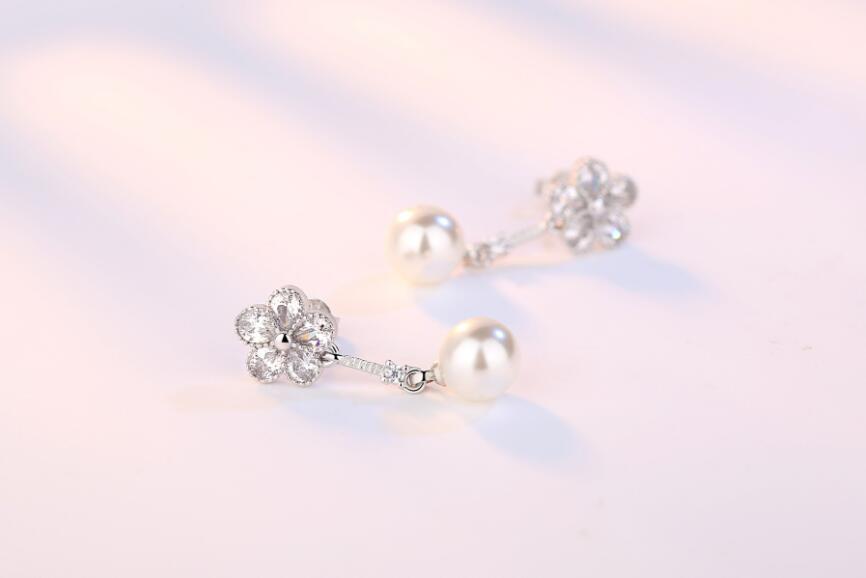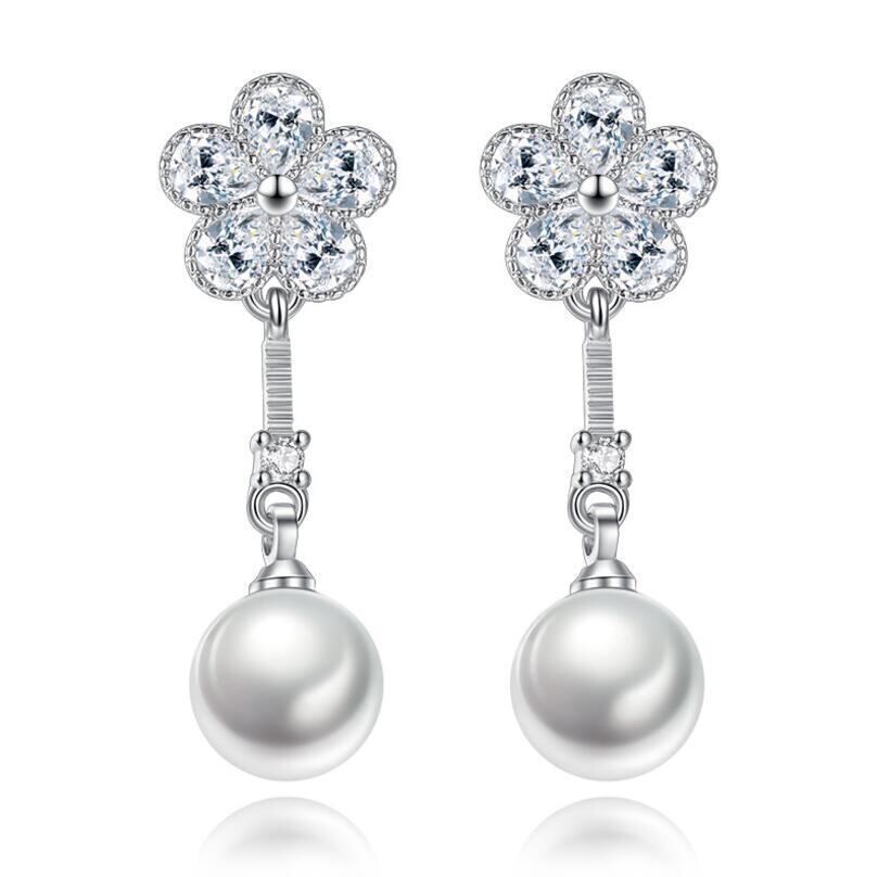 送料無料 ANENJERYシルバーカラープラムフラワージルコンダングルピアス、シミュレートされたパールペンダント女性のウェディングパーティーS-E252 イヤリング 真珠 リング 指輪 フラワーデザイン 銀 人工 アクセサリー AE165515611910671
